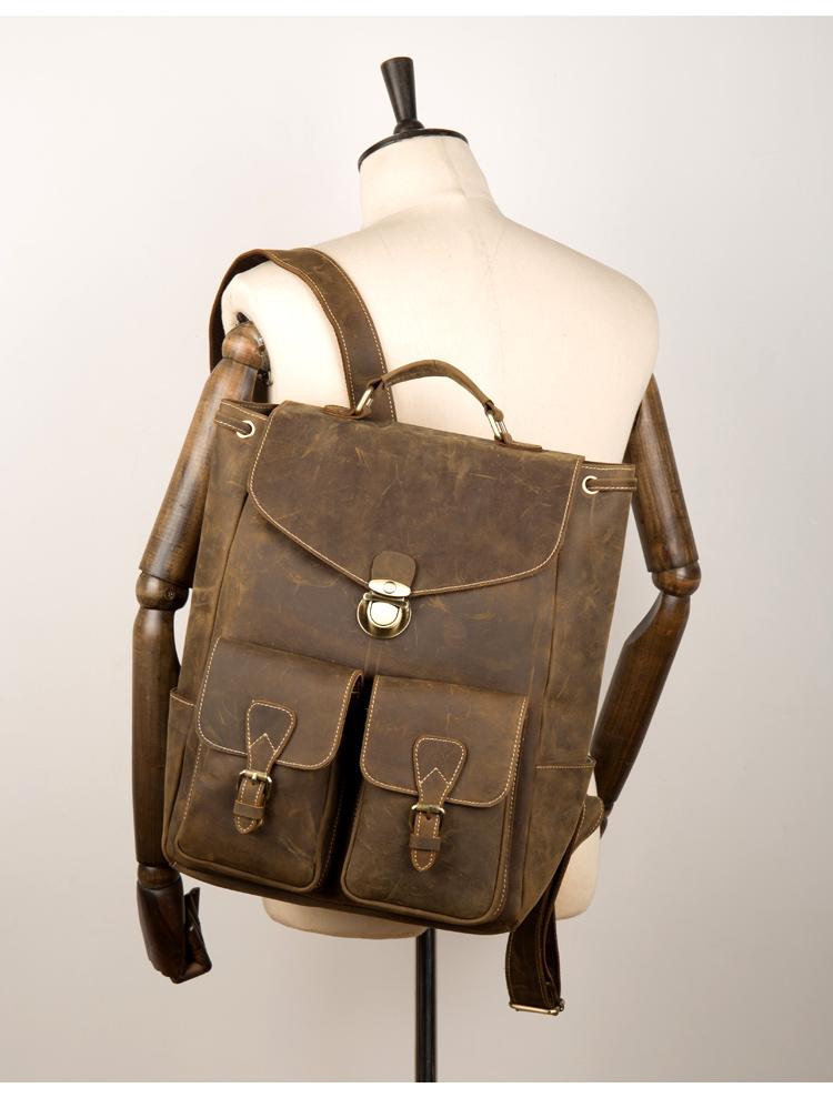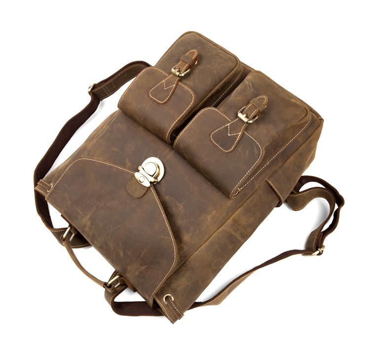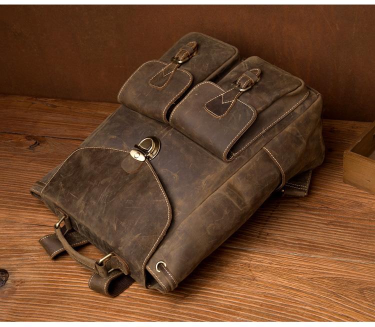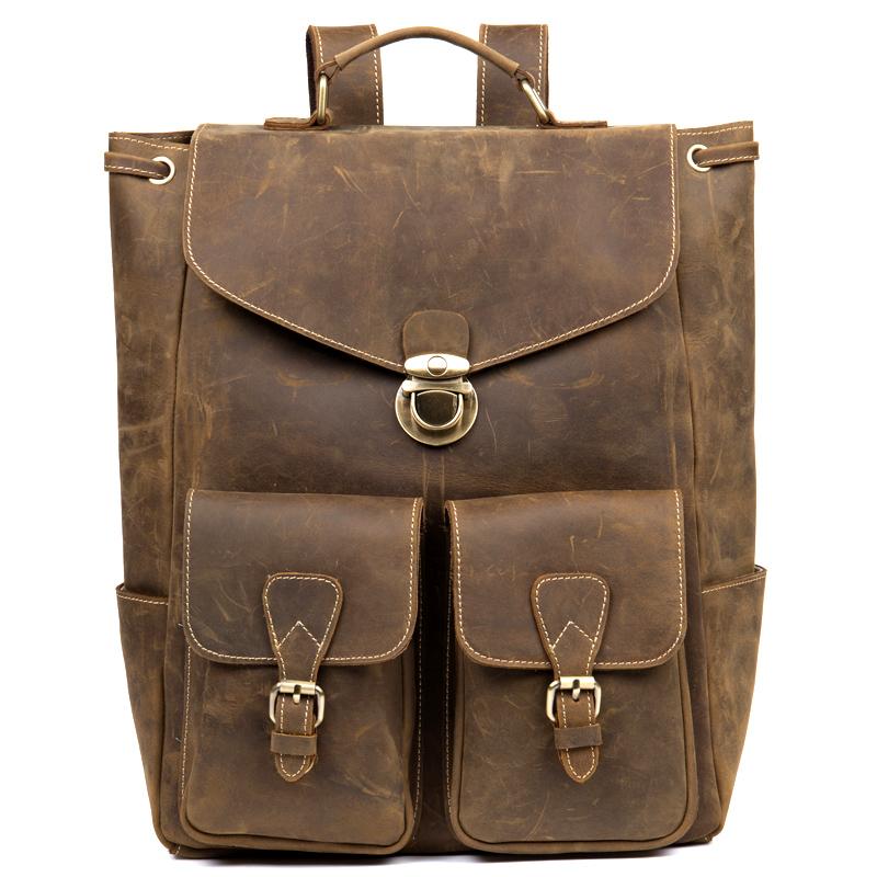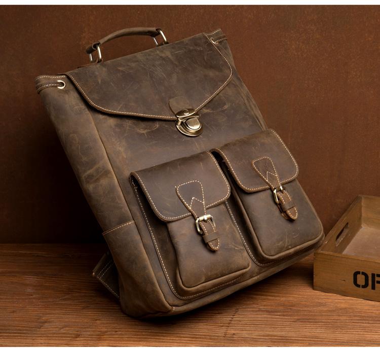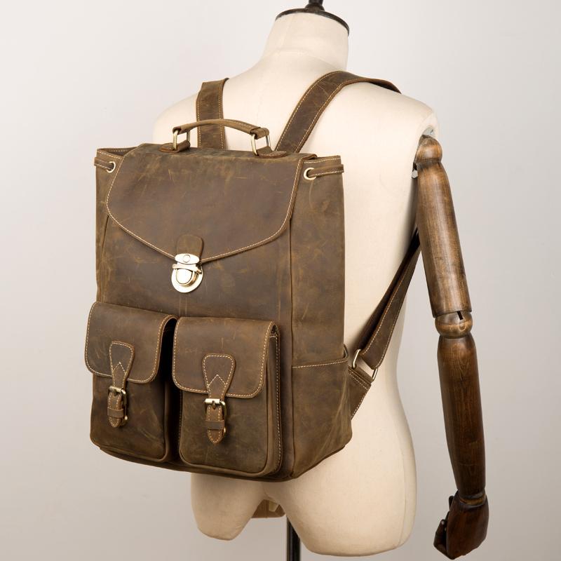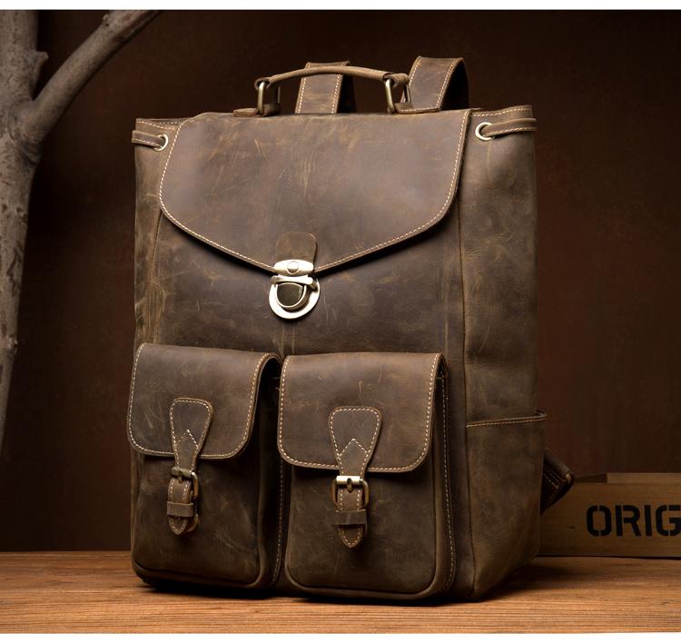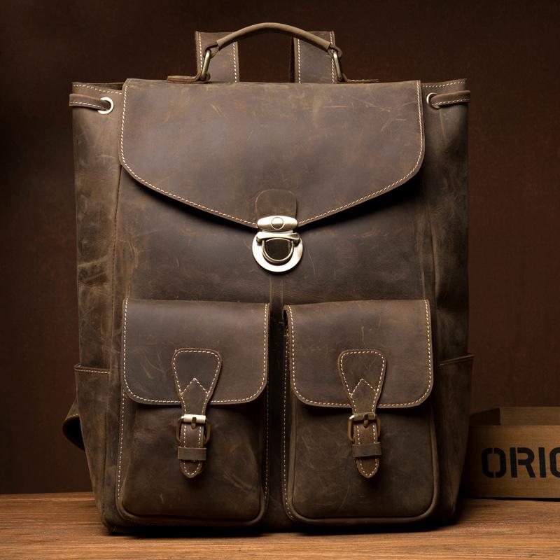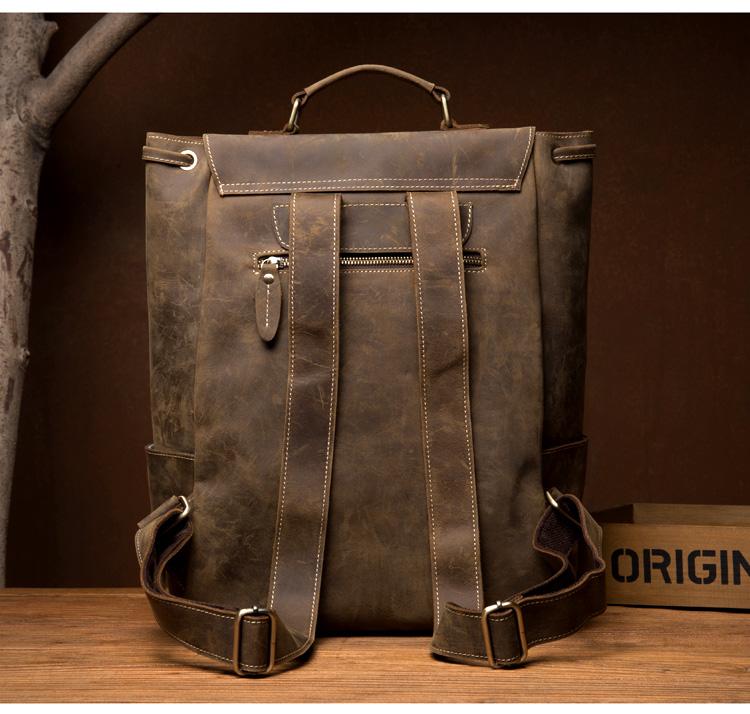 Design: Brown Casual Mens Leather 15-inch Large Backpack Black Travel Backpacks School Backpacks for men