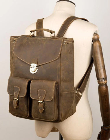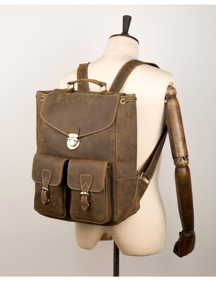 Style: Brown Casual Mens Leather 15-inch Large Backpack Black Travel Backpacks School Backpacks for men