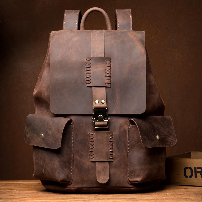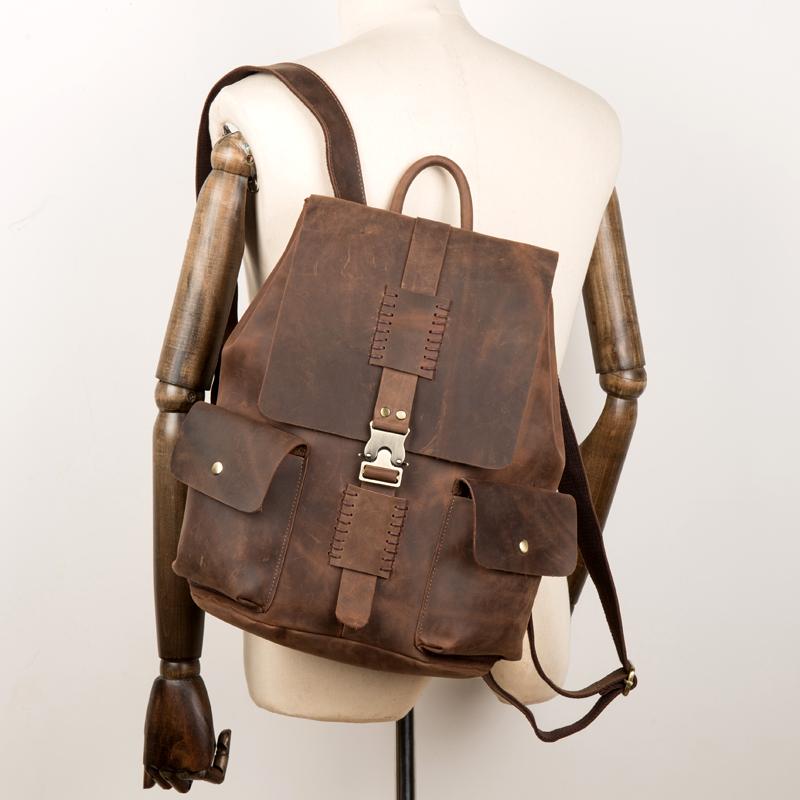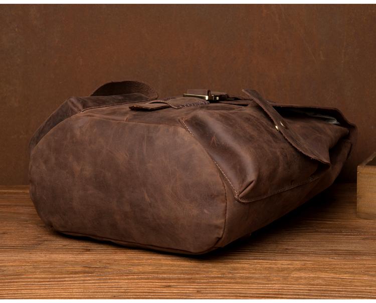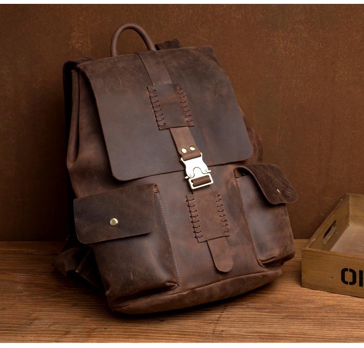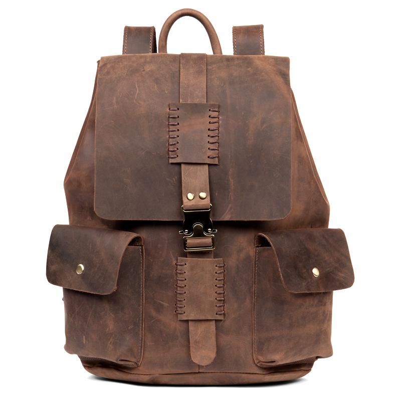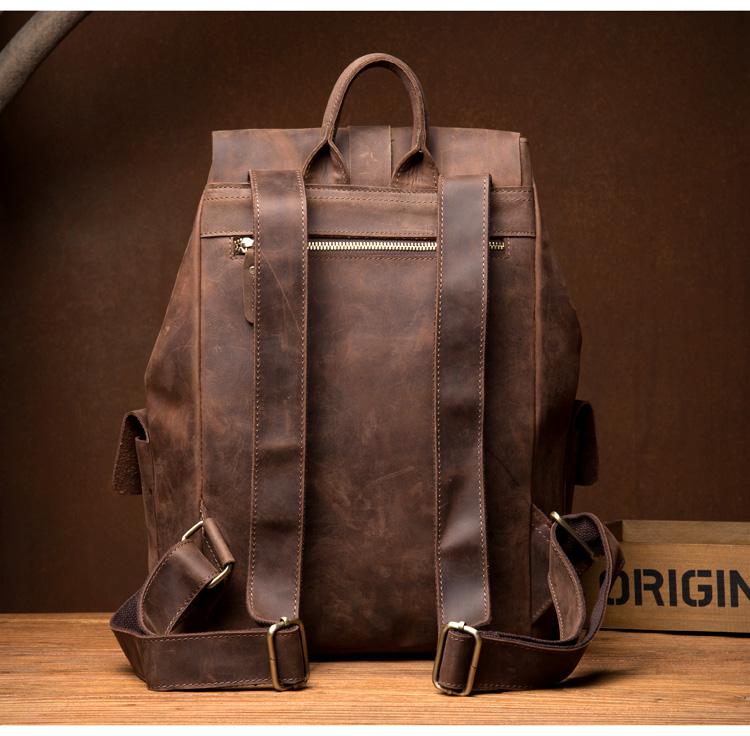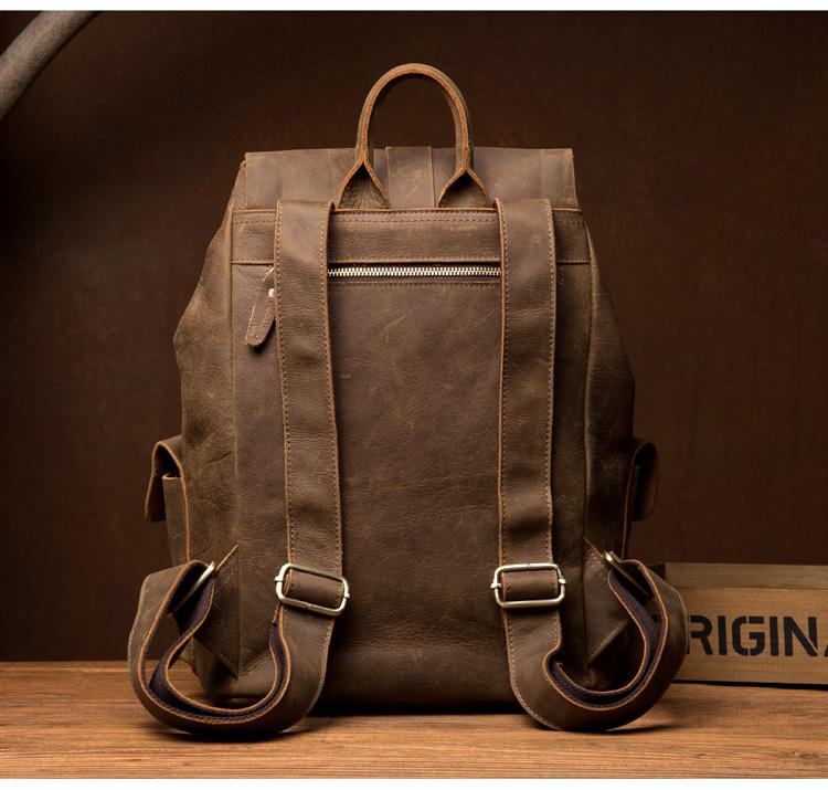 Design: Brown Casual Mens Leather 15-inch Large Backpack Dark Brown Travel Backpacks School Backpacks for men