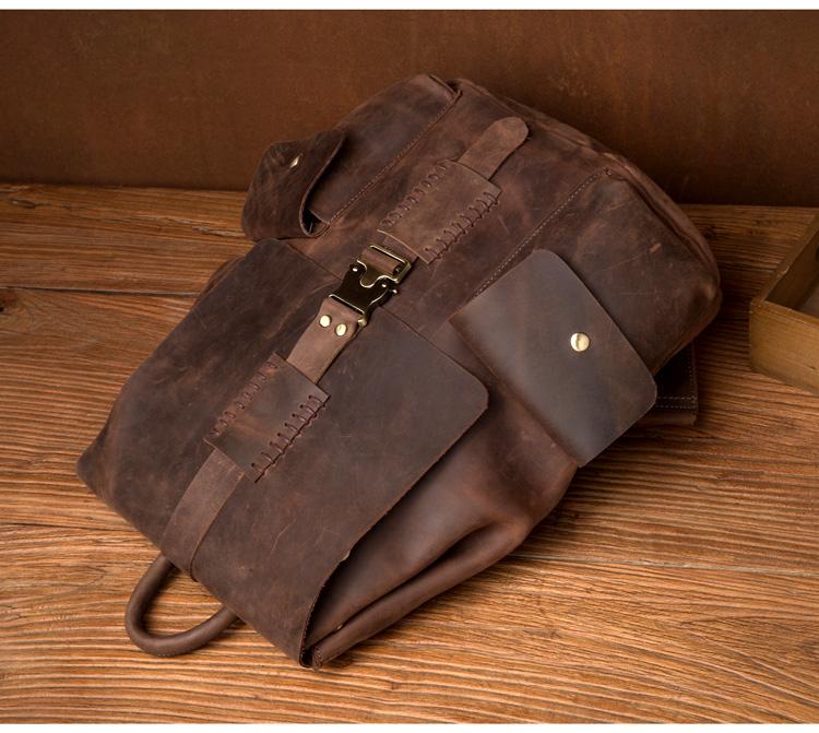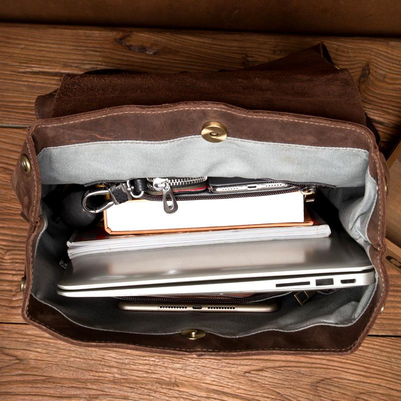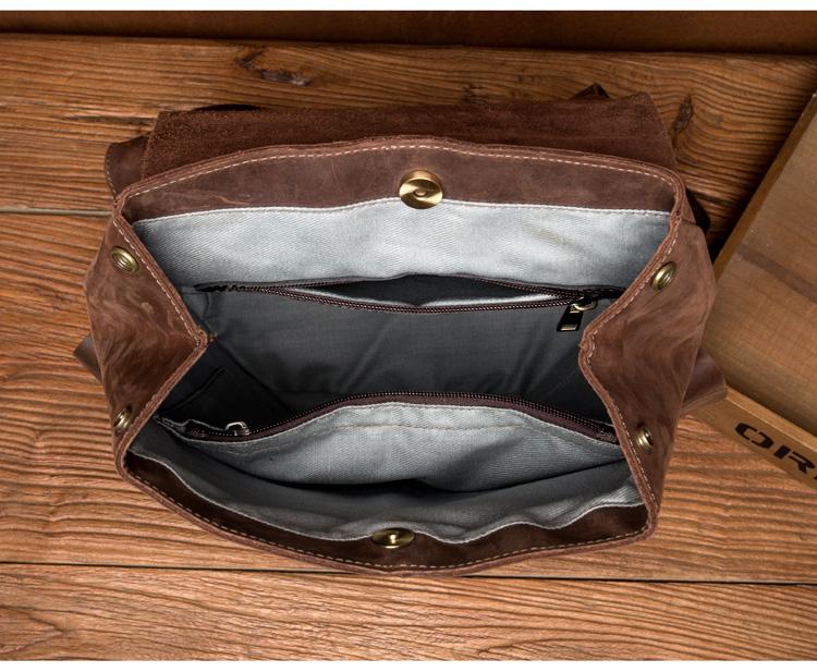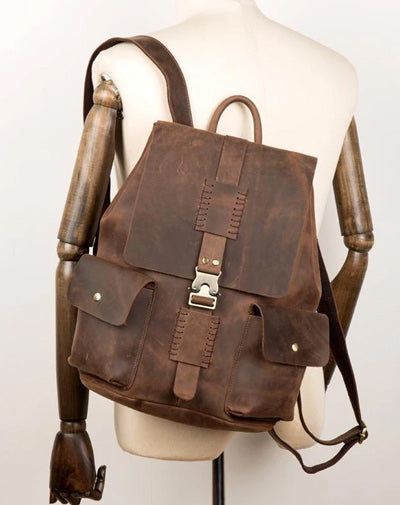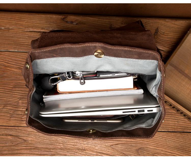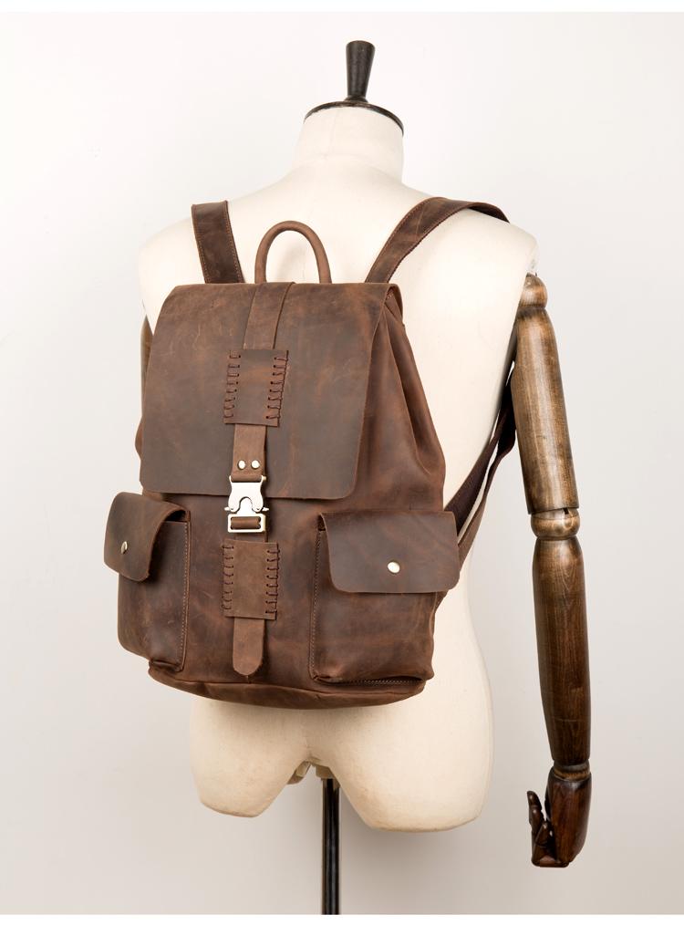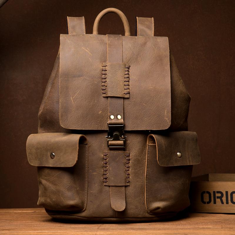 Design: Brown Casual Mens Leather 15-inch Large Backpack Dark Brown Travel Backpacks School Backpacks for men