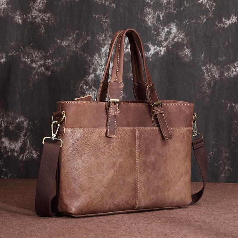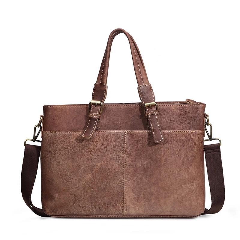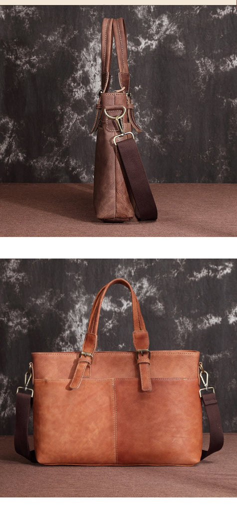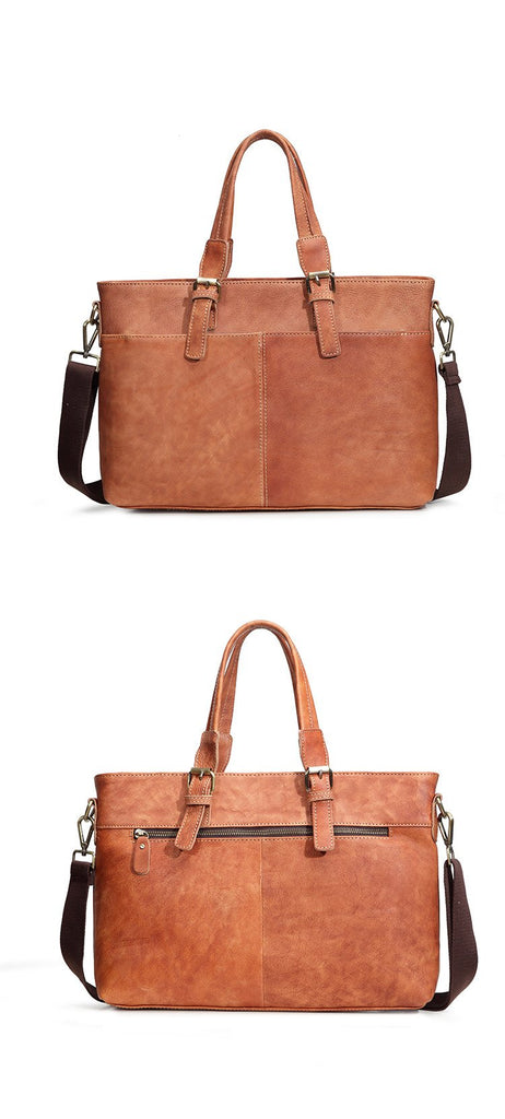 Design: Brown Cool Leather 14 inches Light Brown Briefcase Bag Messenger Bag Handbag Shoulder Bag For MenOverview:
