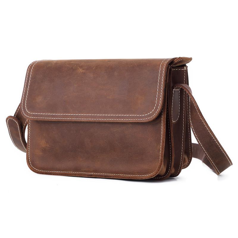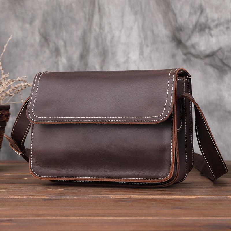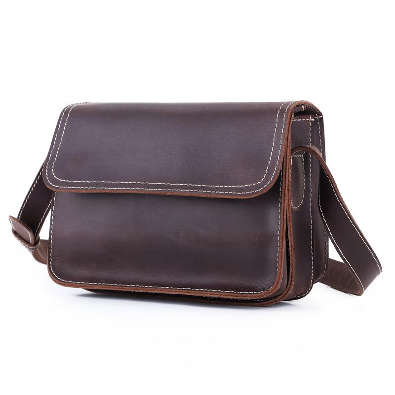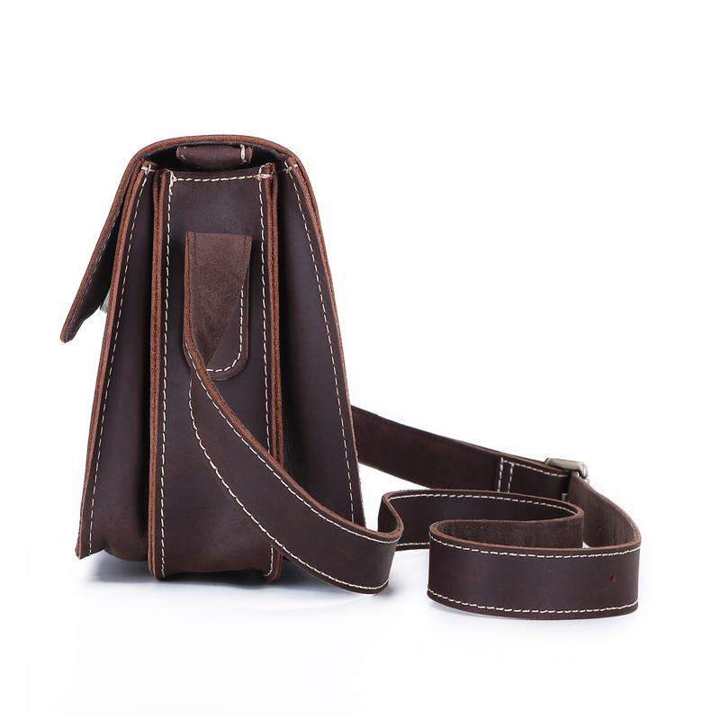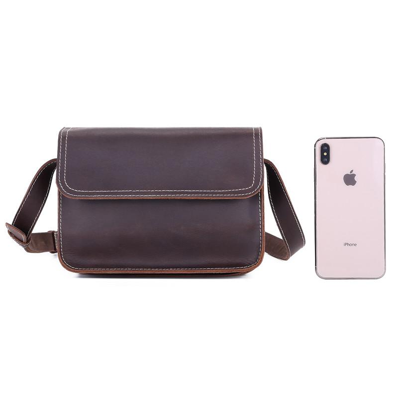 Design: Brown Cool Leather 8 inches Dark Brown Satchel Messenger Bag Side Bag Courier Bag For MenOverview:
