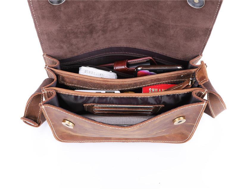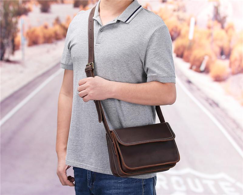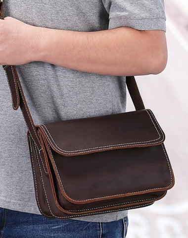 Design: Brown Cool Leather 8 inches Dark Brown Satchel Messenger Bag Side Bag Courier Bag For Men