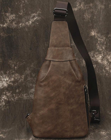 Style: Brown Cool LEATHER MENS 8 inches One Shoulder Backpack Chest Bag Retro Brown Shoulder Bag For Men