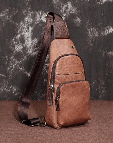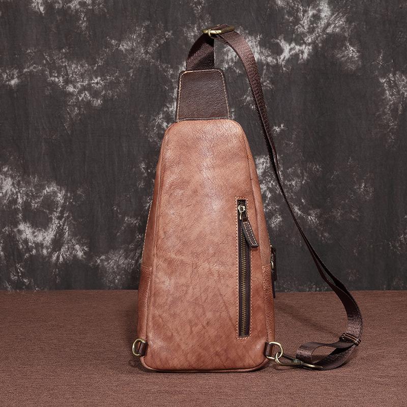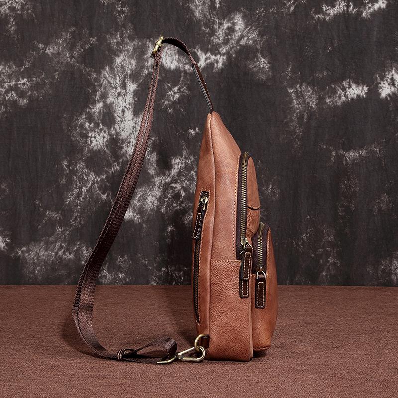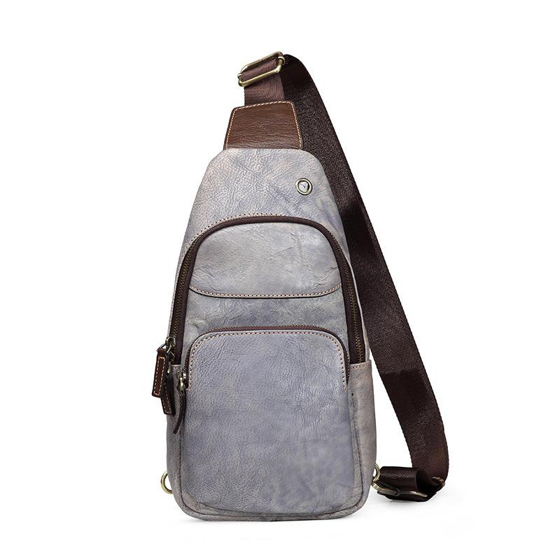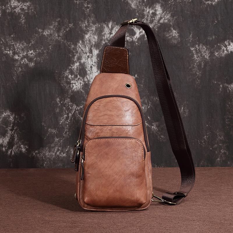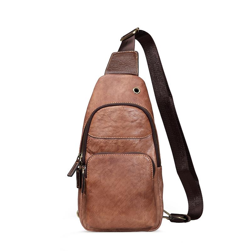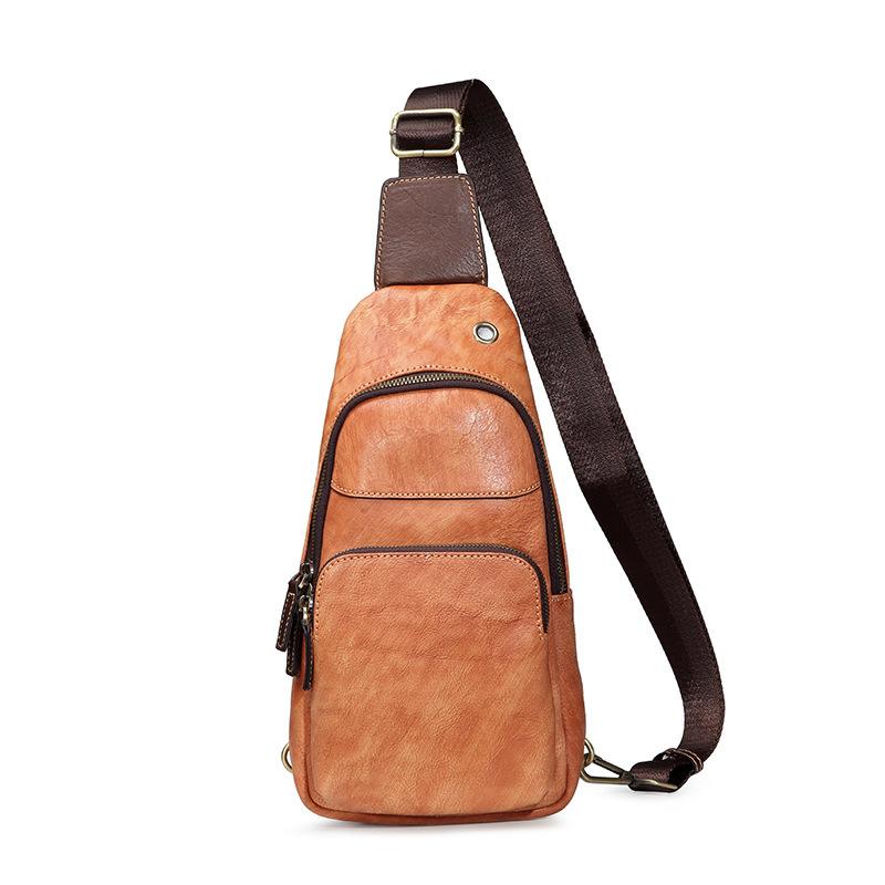 Style: Brown Cool LEATHER MENS 8 inches Sling Bag Yellow One Shoulder Backpack Gray Chest Bag For Men