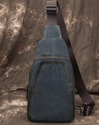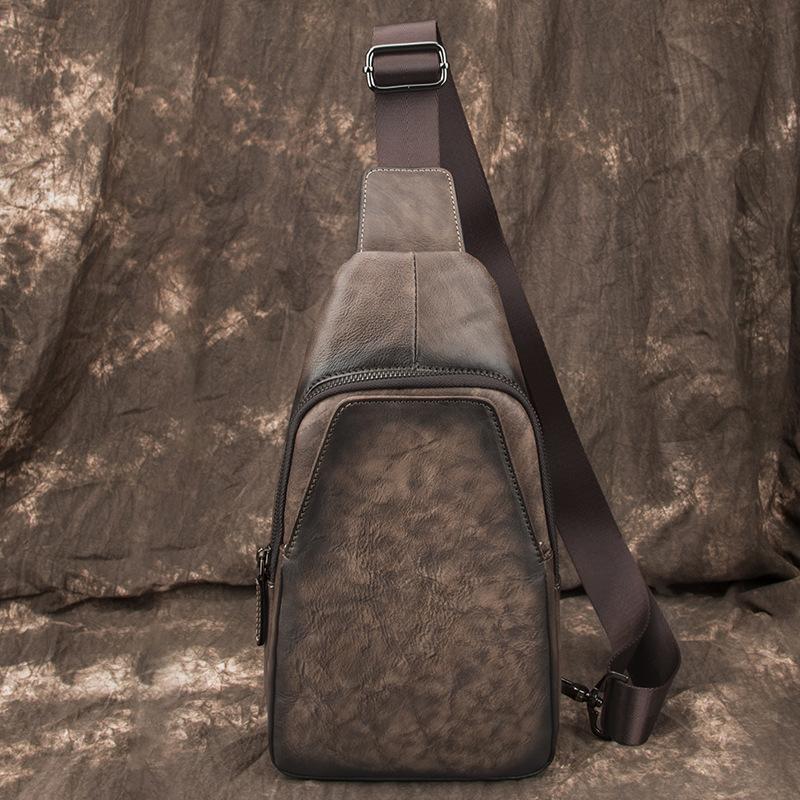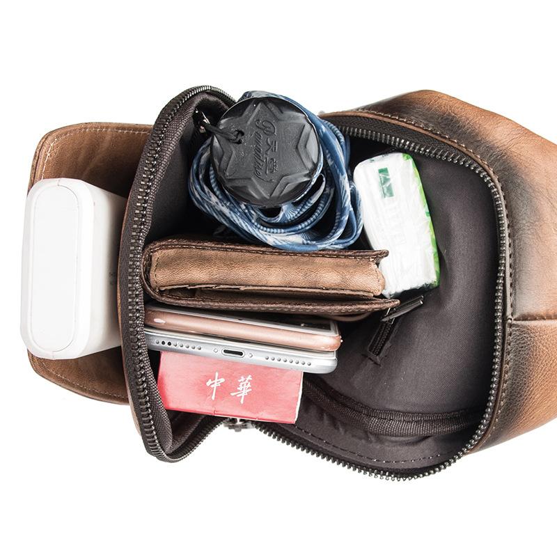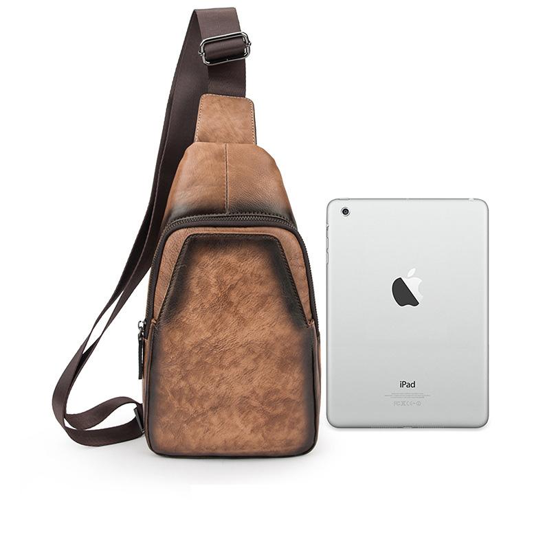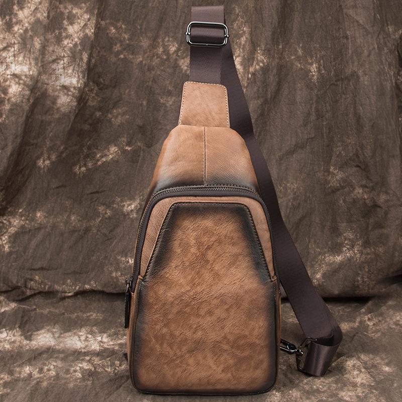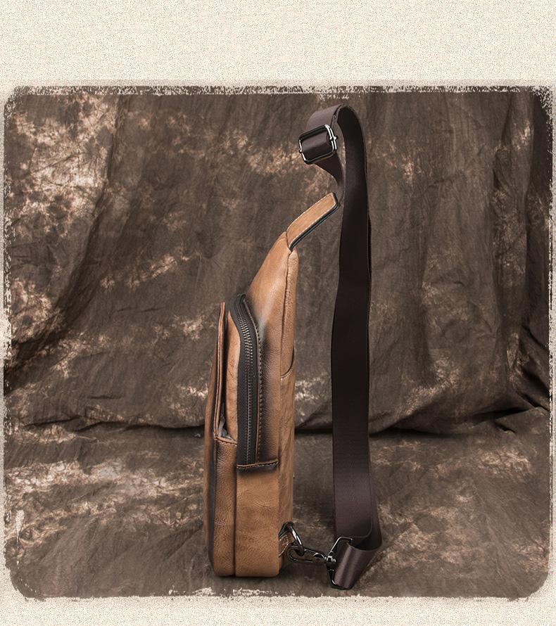 Style: Brown Cool LEATHER MENS 8 inches Tan Sling Bags One Shoulder Backpack Blue Chest Bag For Men