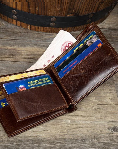 Design: Brown Cool Leather Mens Card Holder Thin Front Pocket Wallet Trifold Slim Card Wallets for Men