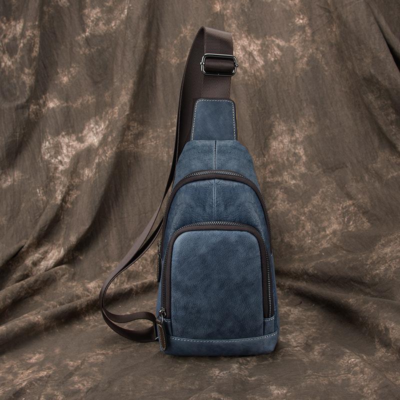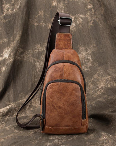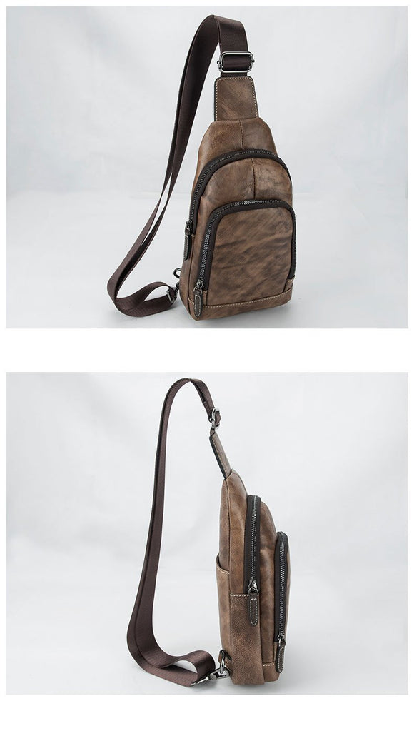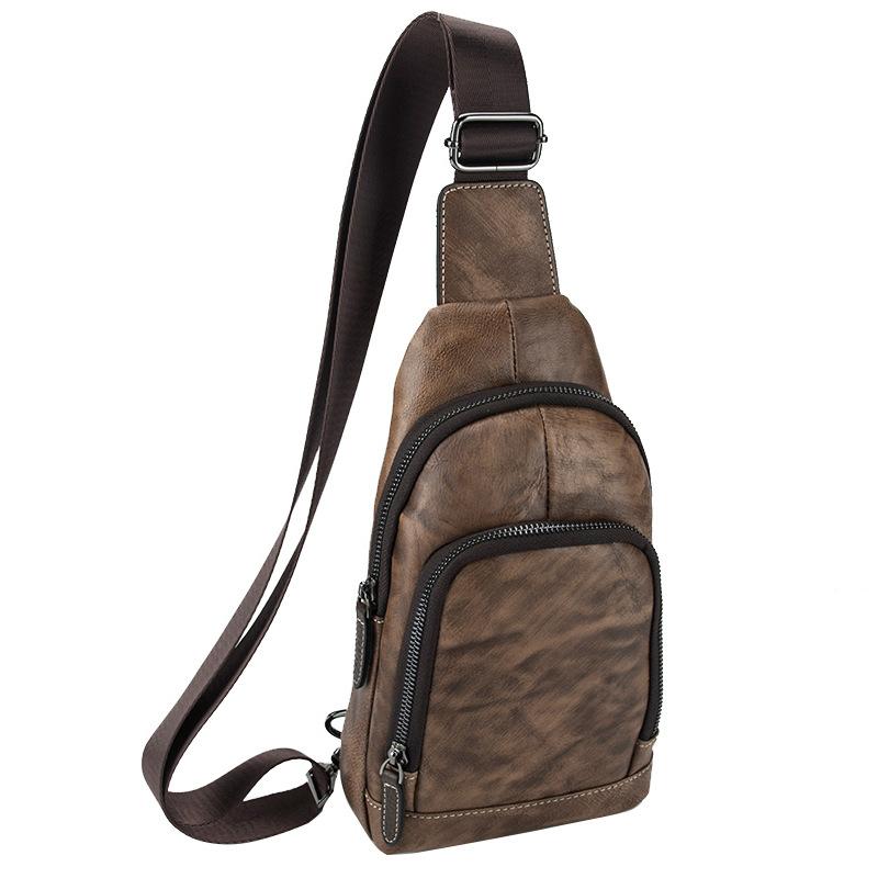 Design: Brown Cool LEATHER MENS Small Sling Bag One Shoulder Backpack Chest Bag Sports Bag For Men