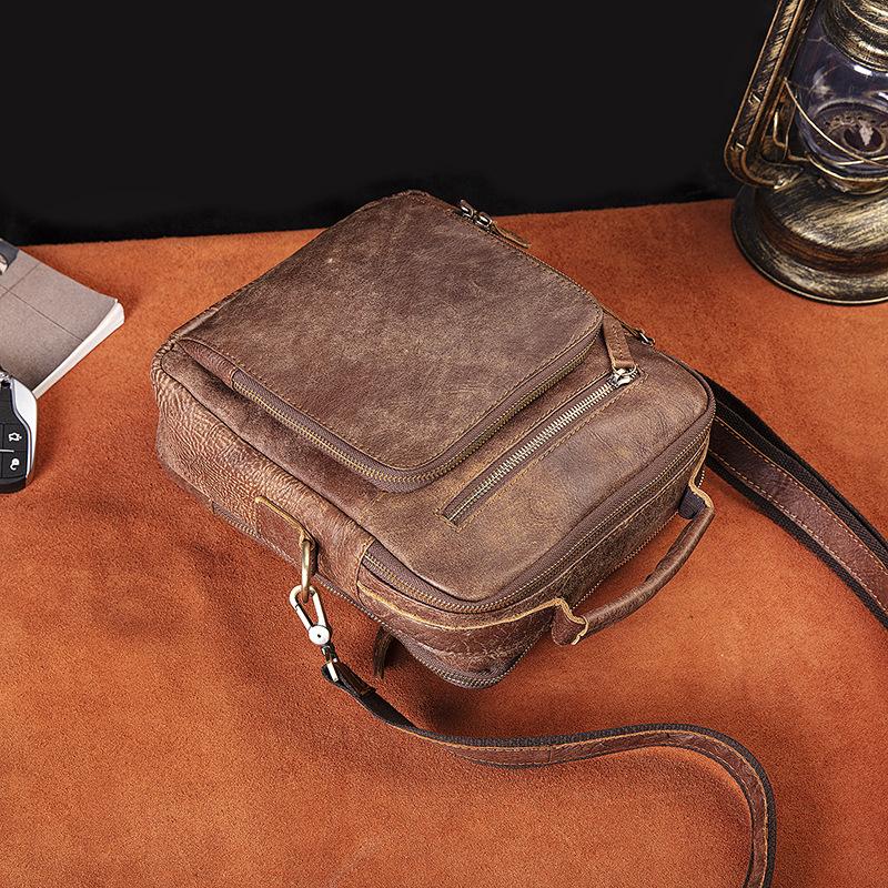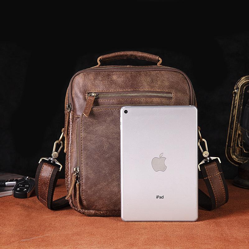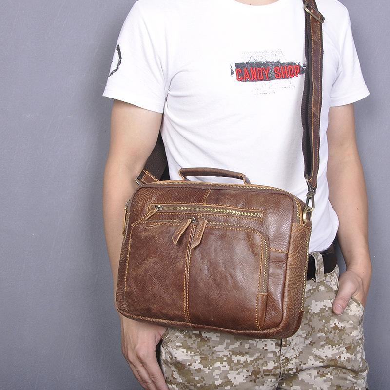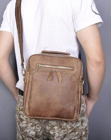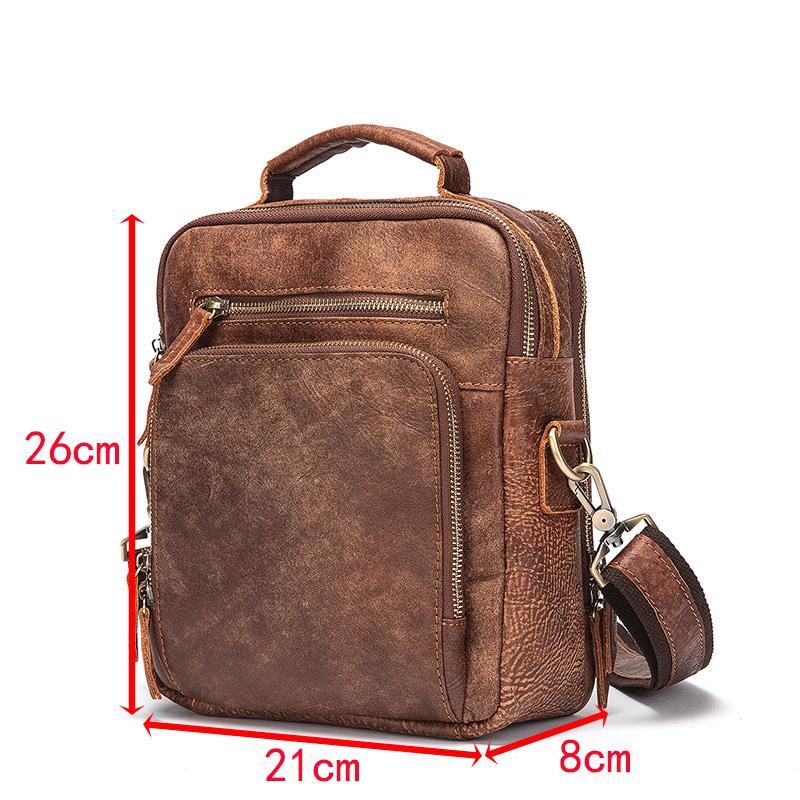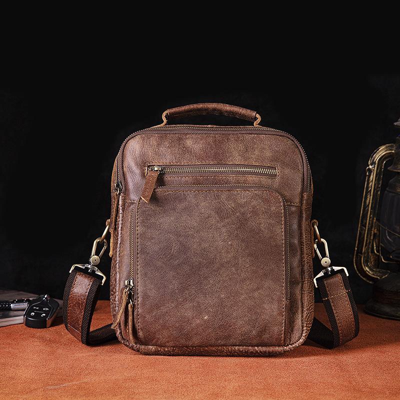 Design: Brown Cool Leather Small Vertical Side Bag Briefcase Messenger Bag Brown Handbag Shoulder Bag For MenOverview: