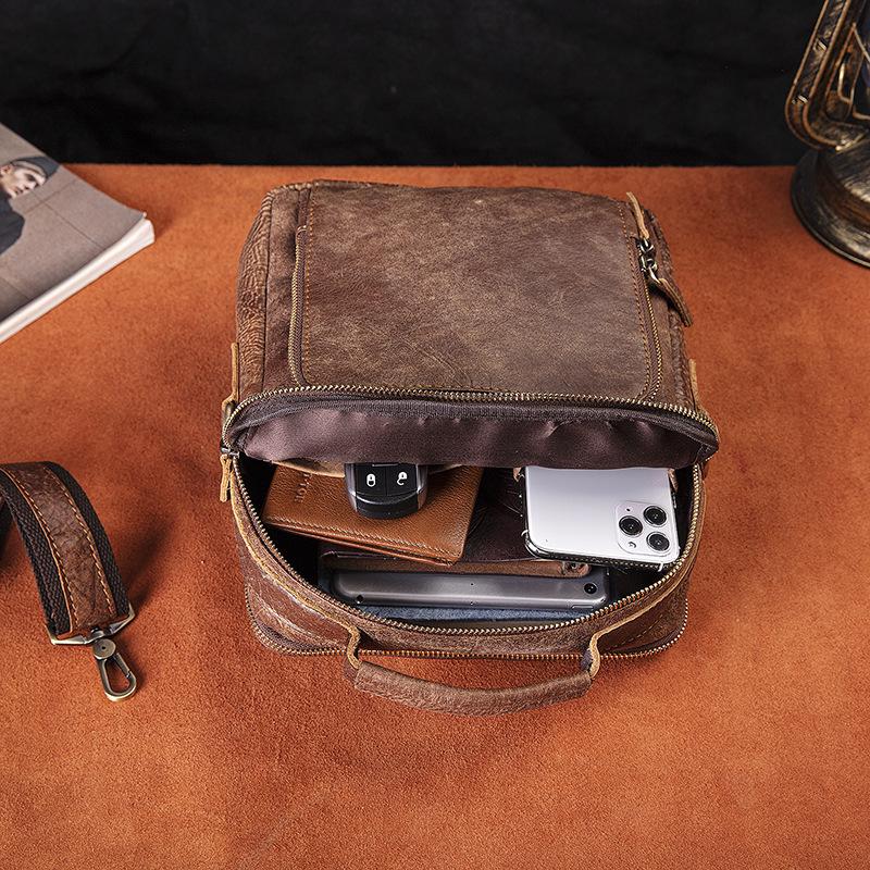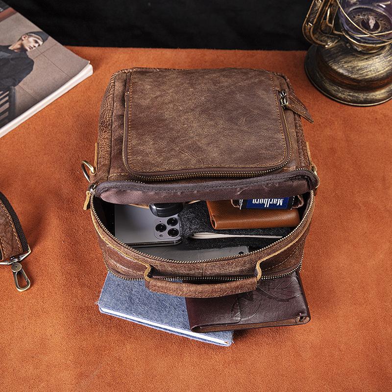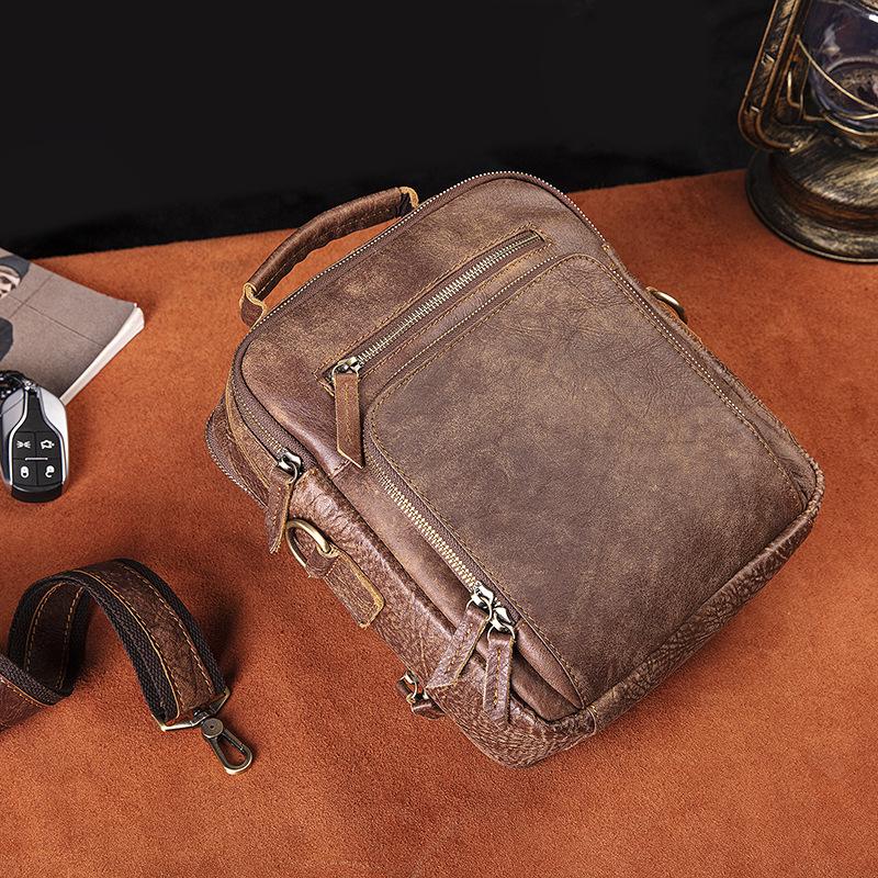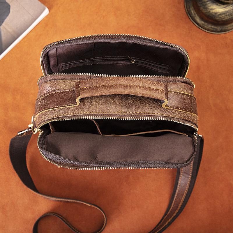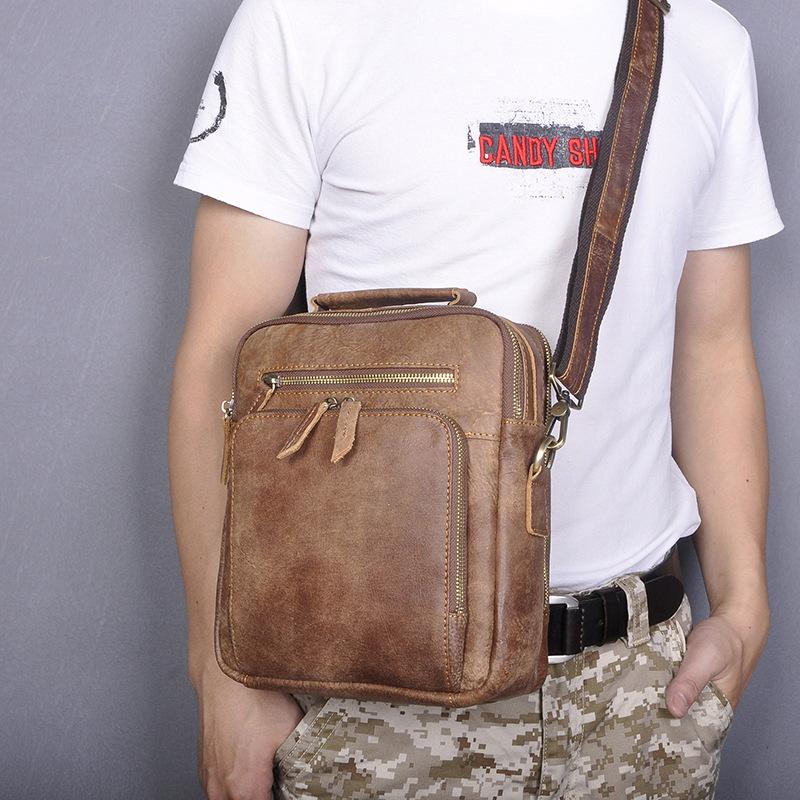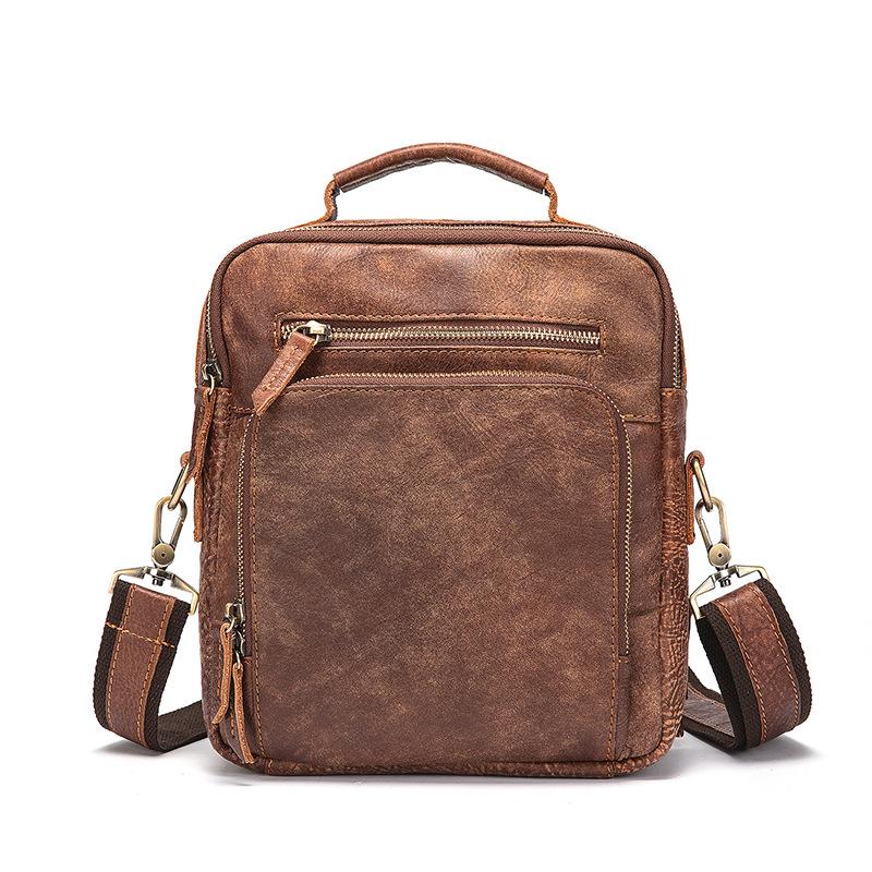 Design: Brown Cool Leather Small Vertical Side Bag Briefcase Messenger Bag Brown Handbag Shoulder Bag For MenOverview: