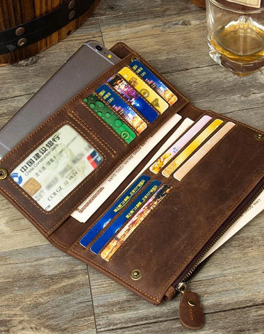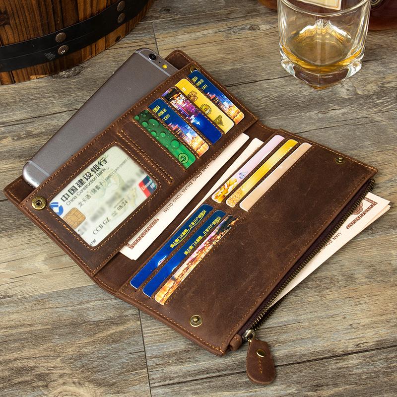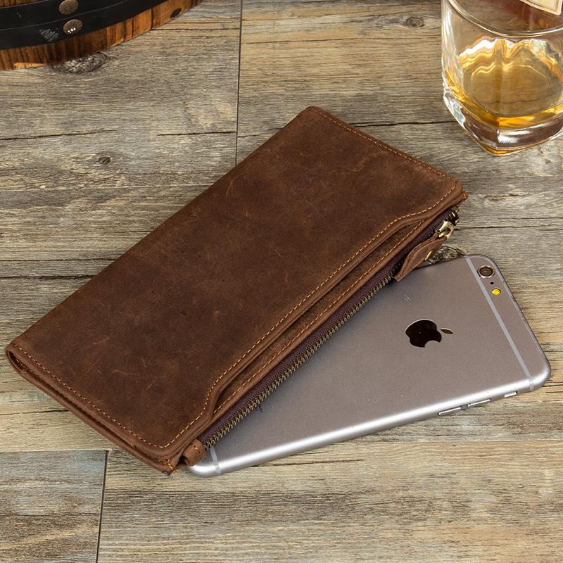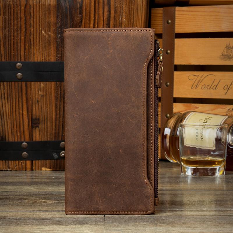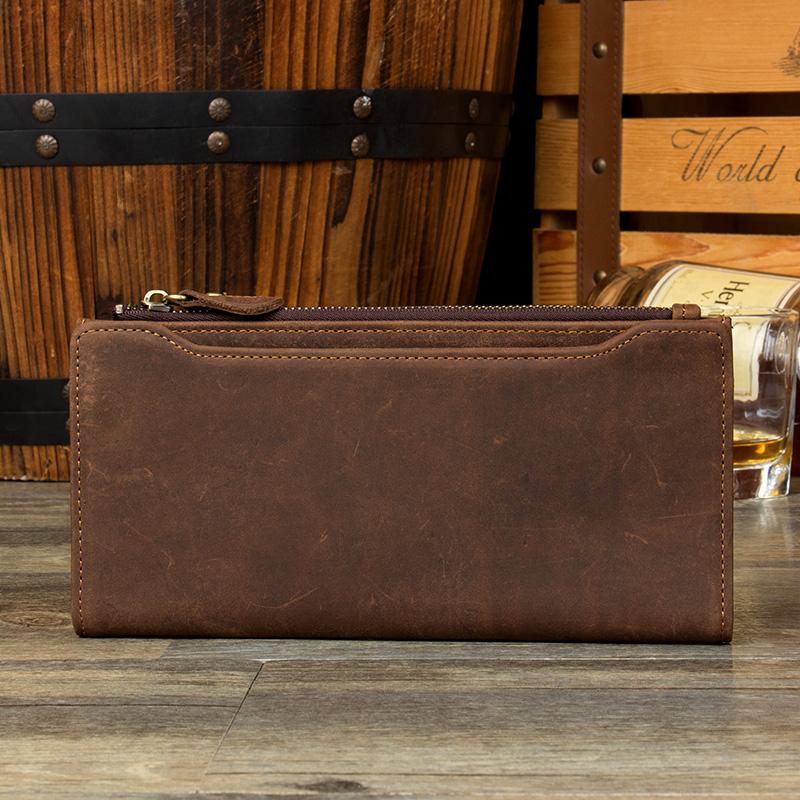 Design: Brown Cool Mens long Wallet Wristlet Bag Clutch Bag Bifold Long Wallet Hand Bags for Men