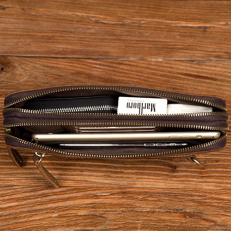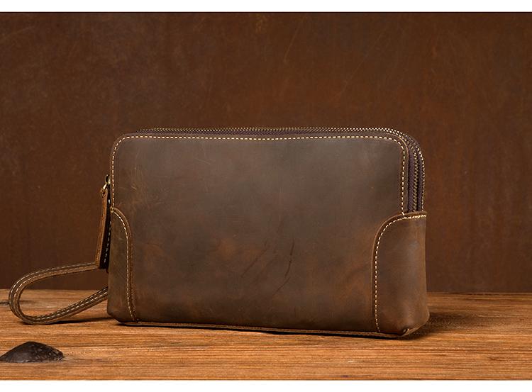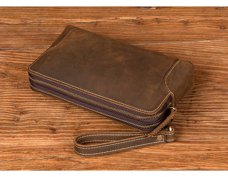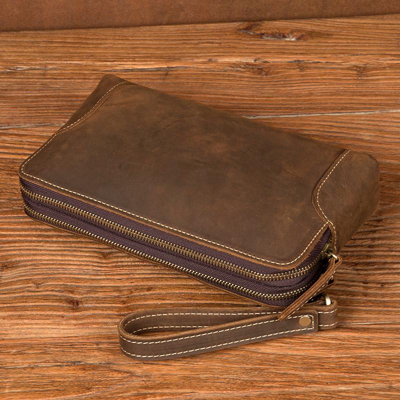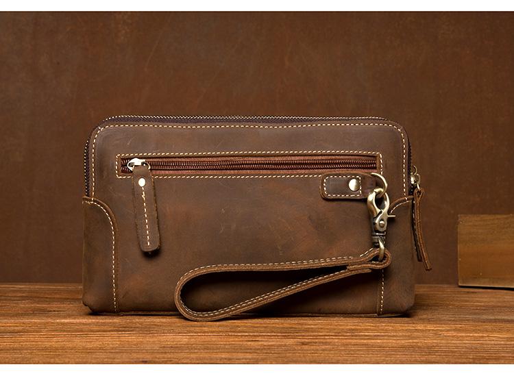 Design: Brown Cool Mens long Wallet Wristlet Bag Clutch Bag Envelope Bag Hand Bag for Men