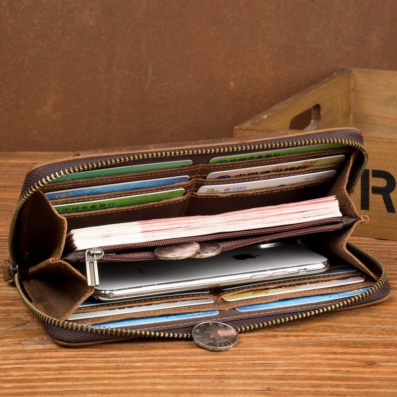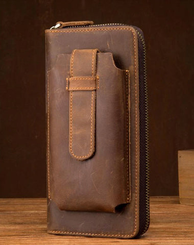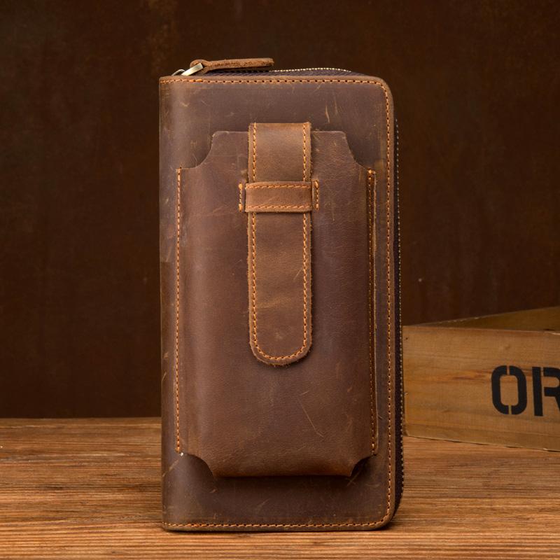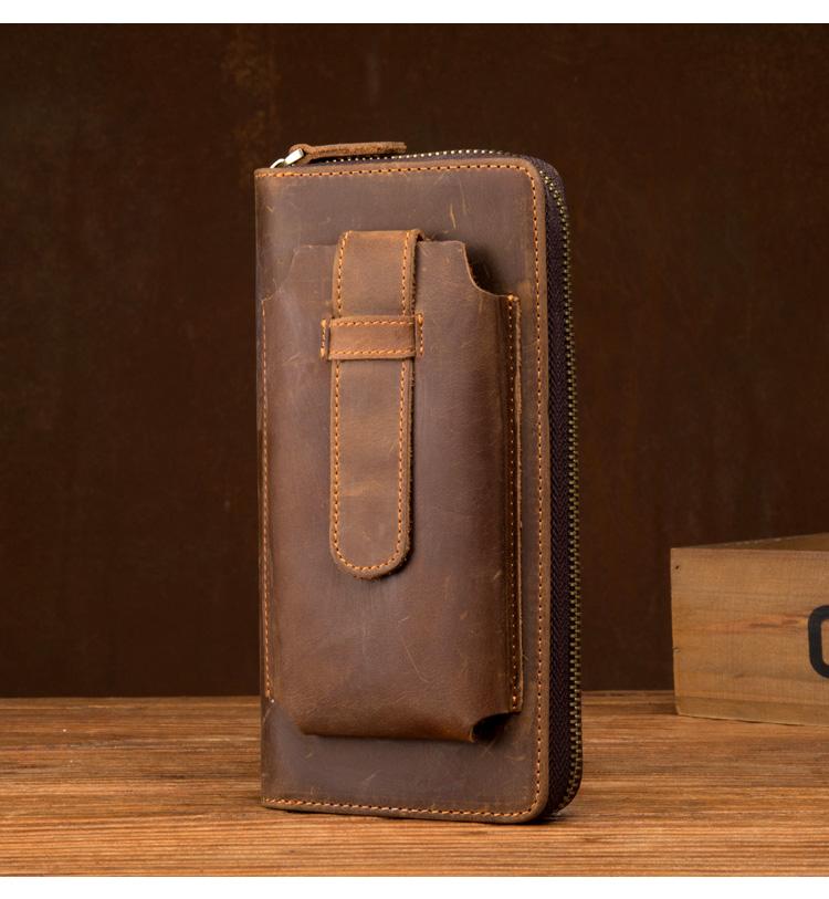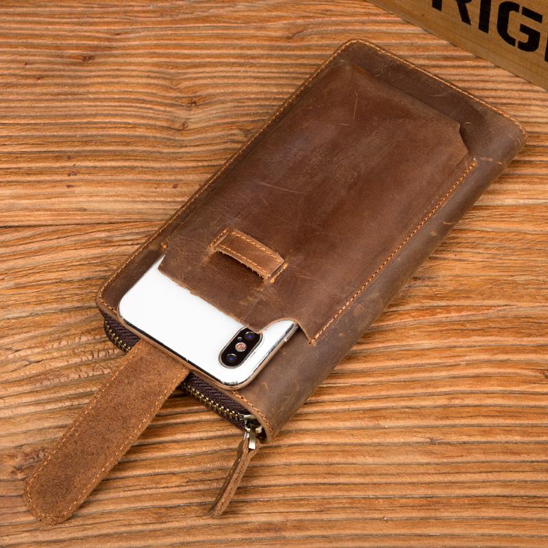 Design: Brown Cool Mens long Wallet Wristlet Bag Clutch Bag Mobile Bags for Men