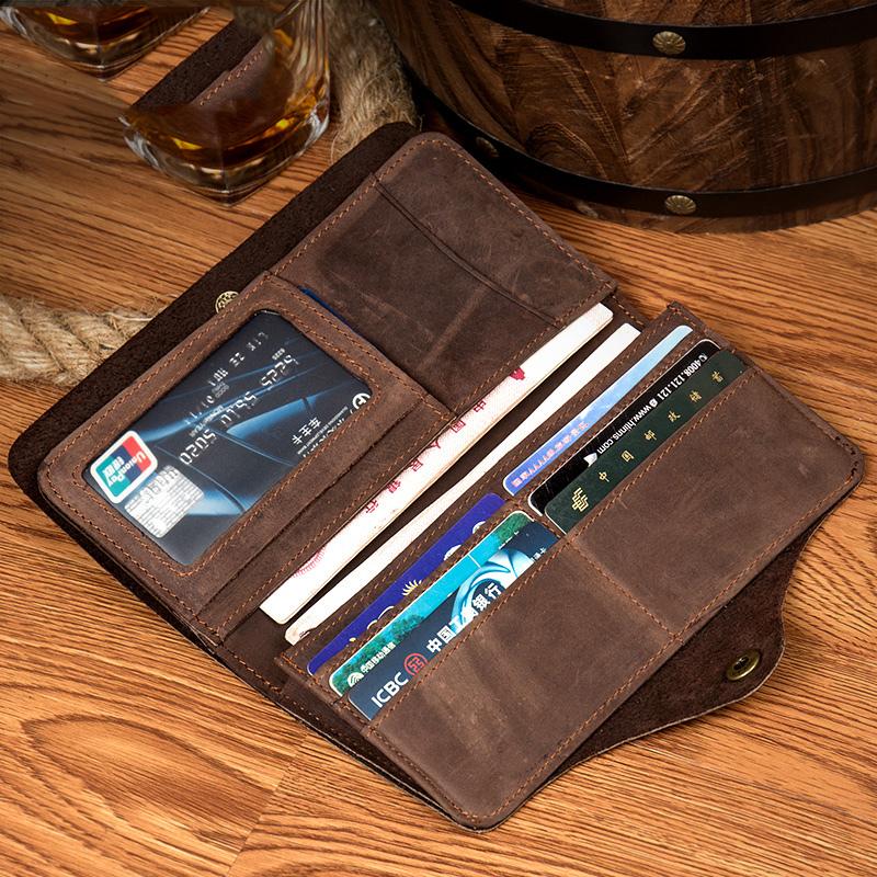 Design: Brown Cool Mens long Wallet Wristlet Bags Clutch Bags Bifold Long Wallet Hand Bag for Men