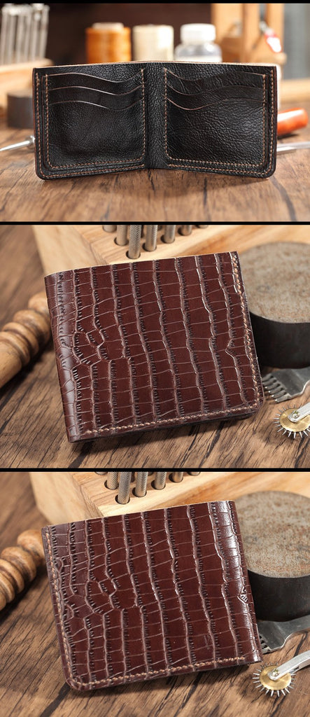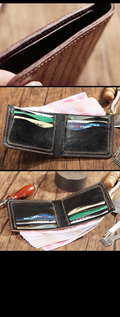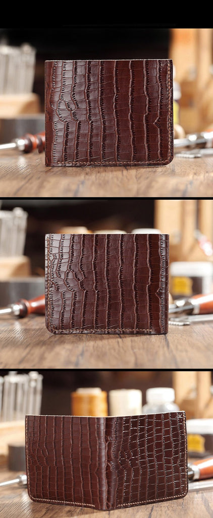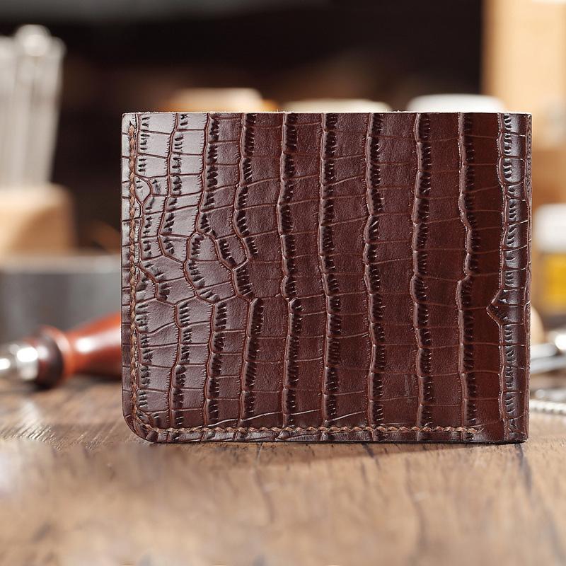 Style: Brown Crocodile Leather Mens Black Zipper Bifold Long Wallet Black Clutch Wallet For Men