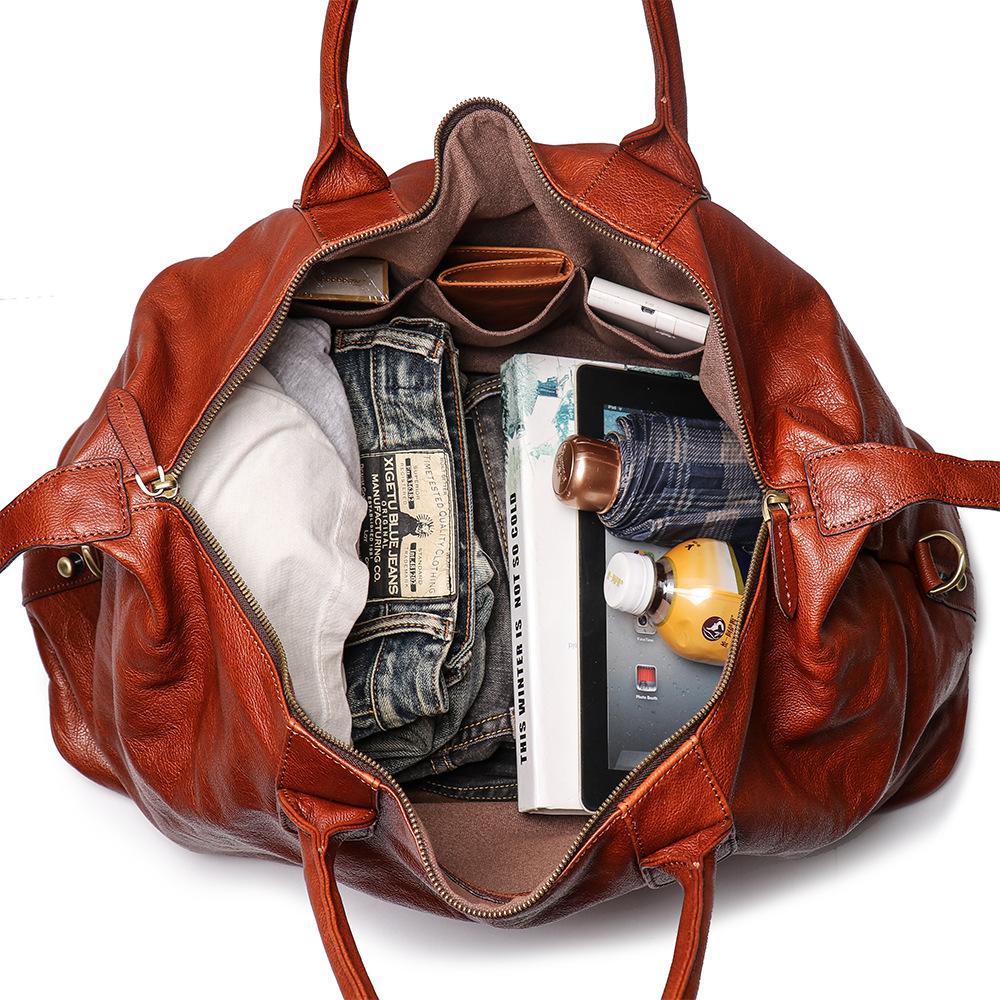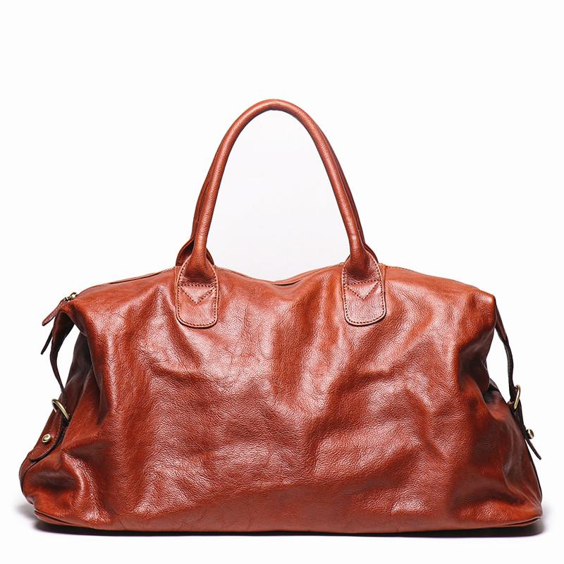 Design: Brown Fashion Leather Mens 15 inches Messenger Bag Large Shoulder Bag Duffel Bag For Men