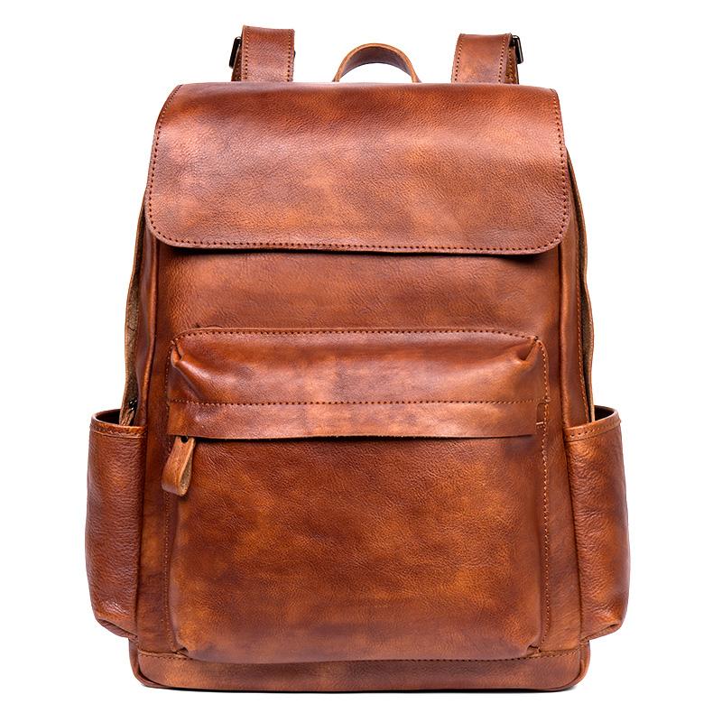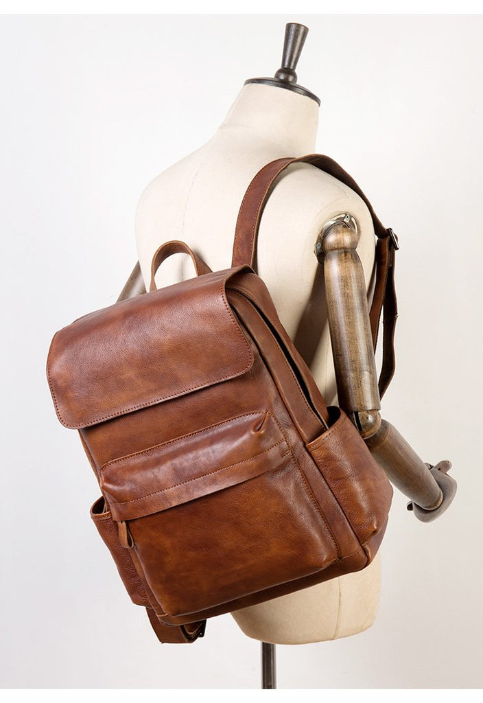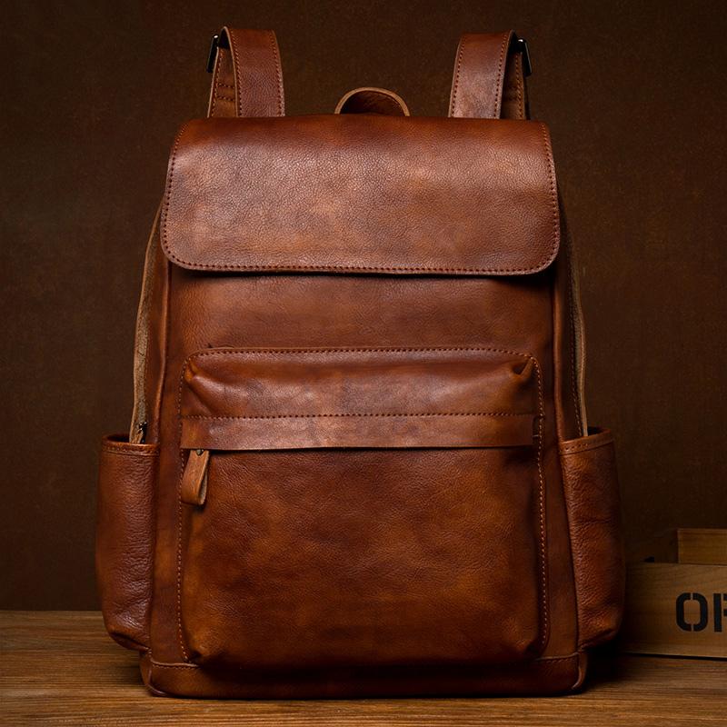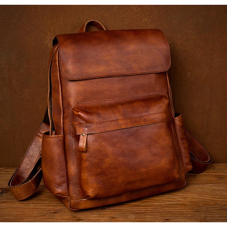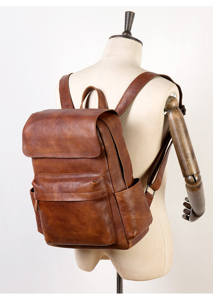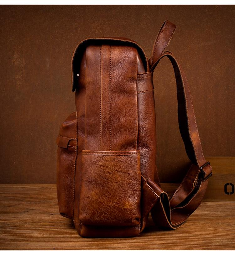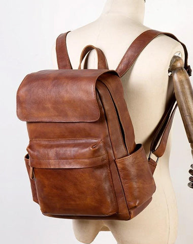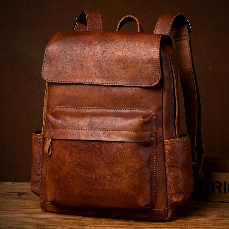 Style: Brown Fashion Mens Leather 15-inch Large Backpacks Black Travel Backpacks School Backpacks for men