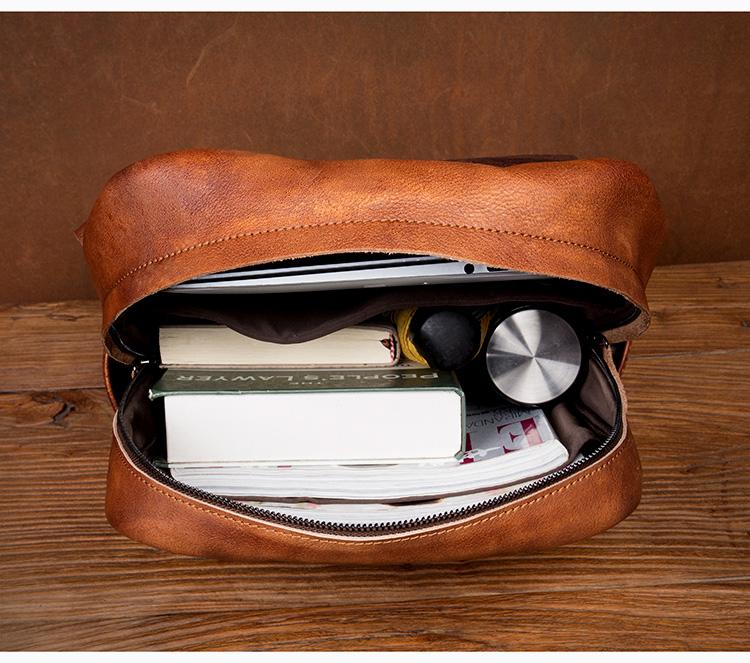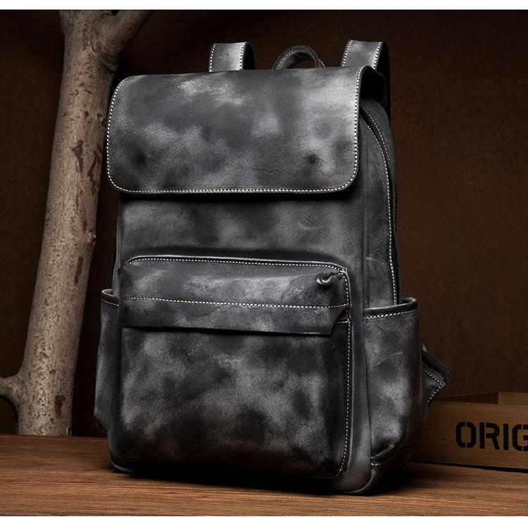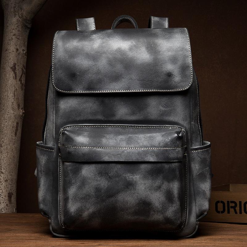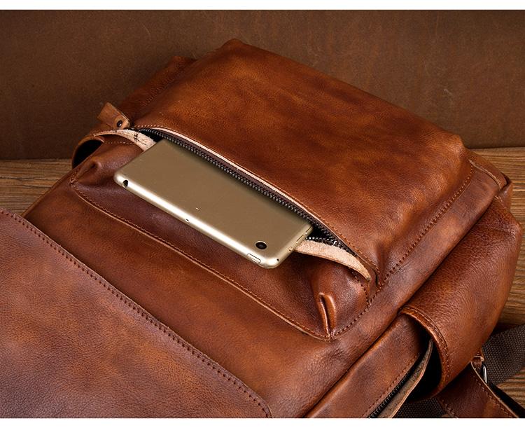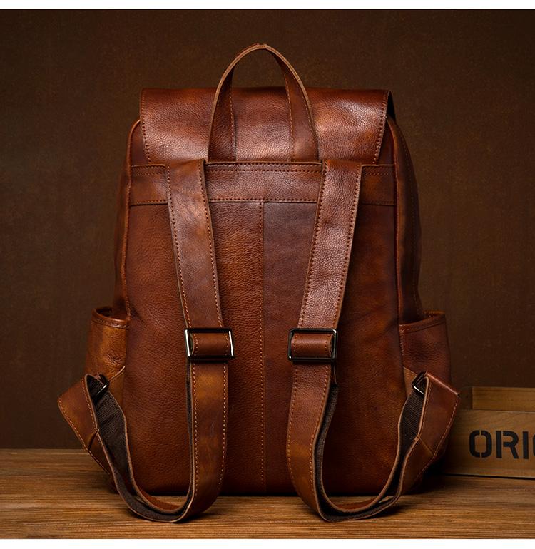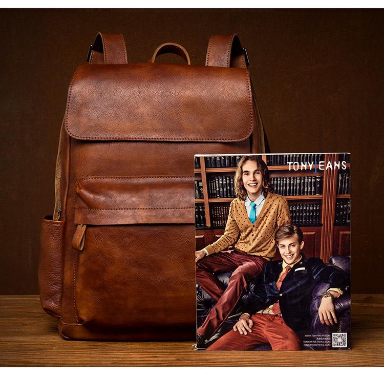 Design: Brown Fashion Mens Leather 15-inch Large Backpacks Black Travel Backpacks School Backpacks for men