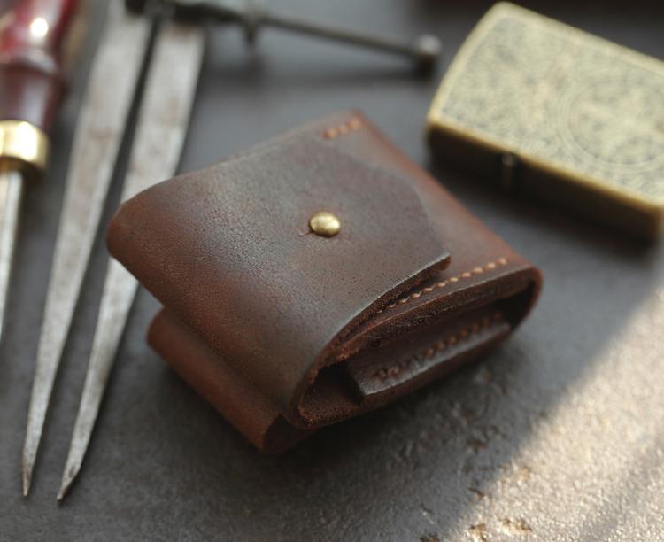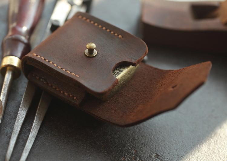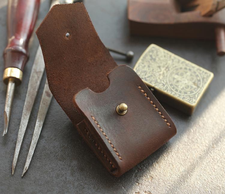 Style: Brown Genuine Handmade Leather Mens Lighter Case With Belt Loop Cool Standard Lighter Holders For Men