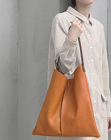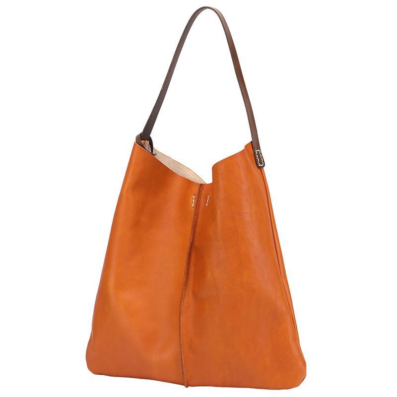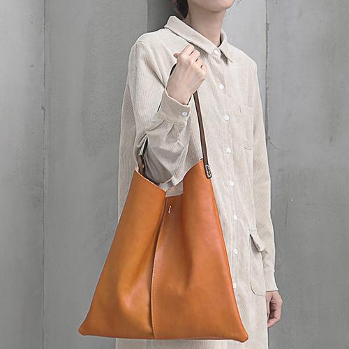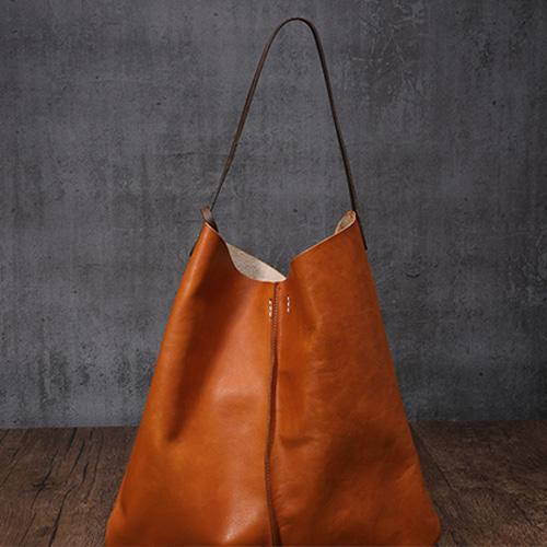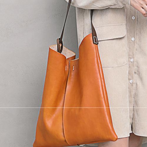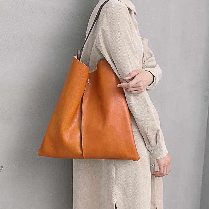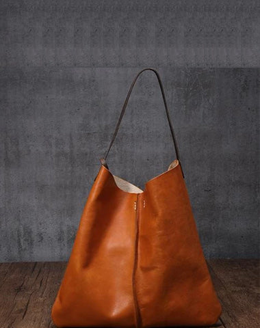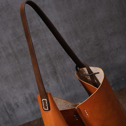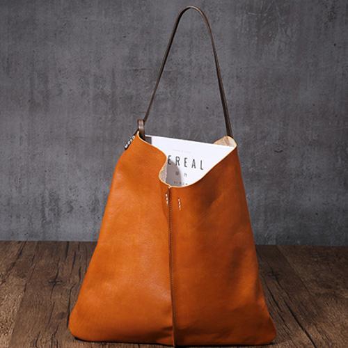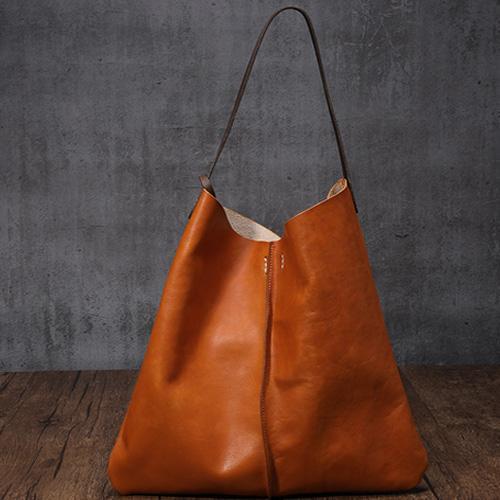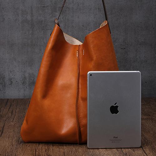 Design: Tan Leather Tote Shopping Bag Bucket Tote Bag Purse