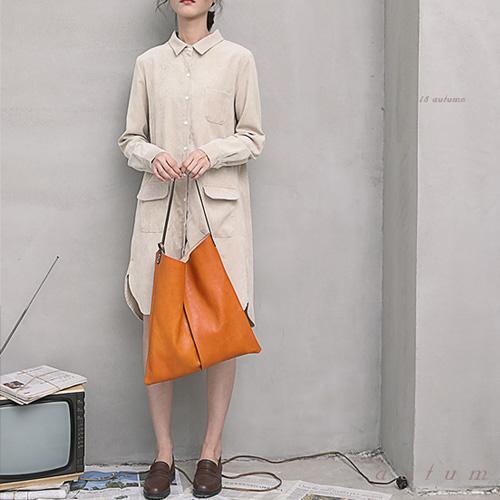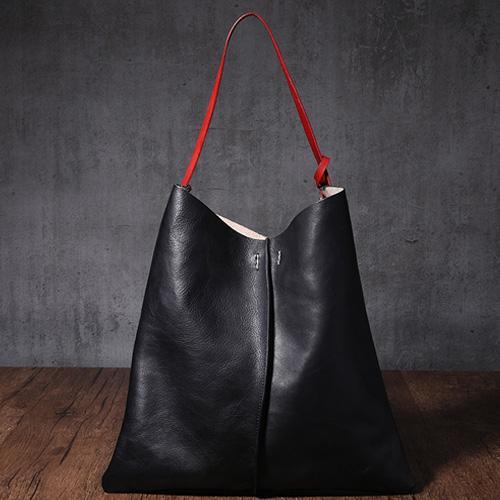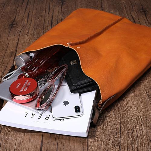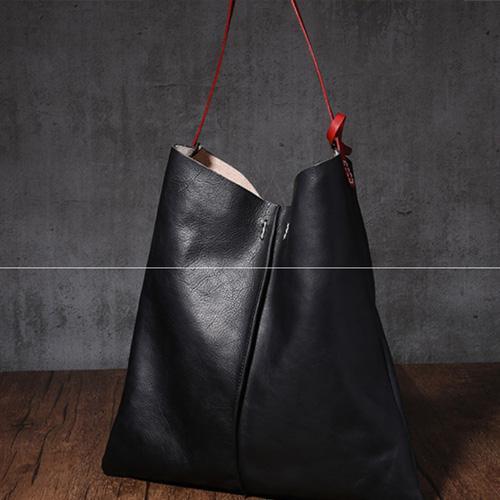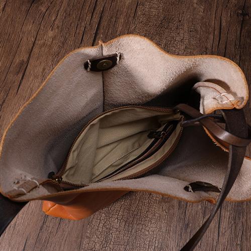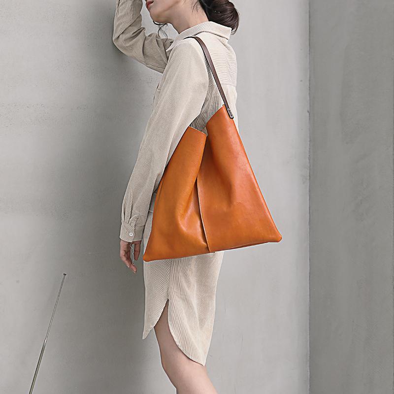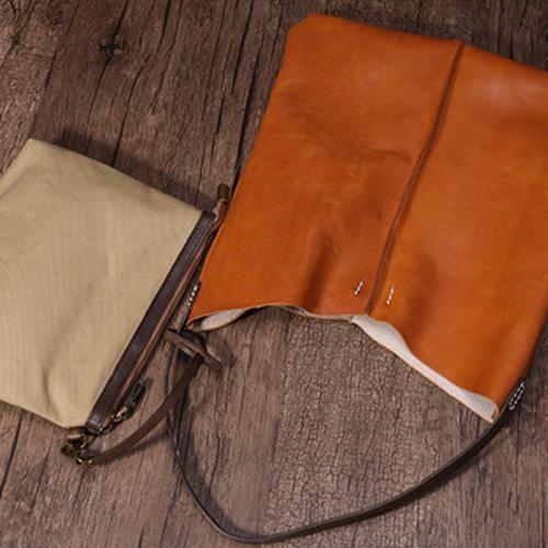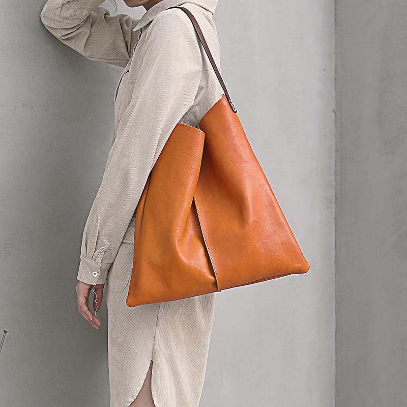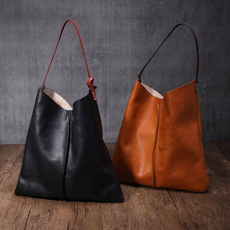 Design: Tan Leather Tote Shopping Bag Bucket Tote Bag Purse
