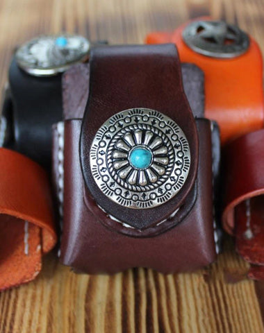 Style: Handmade Mens Black Leather Armor Zippo Lighter Case Belt Zippo Lighter Holder with Belt Clip