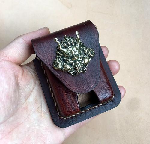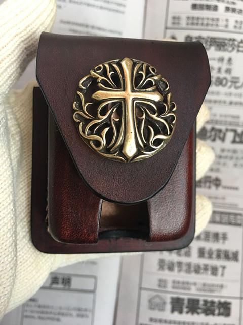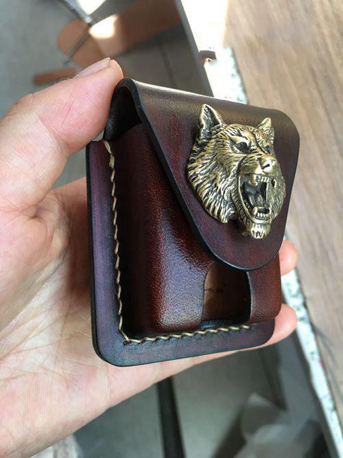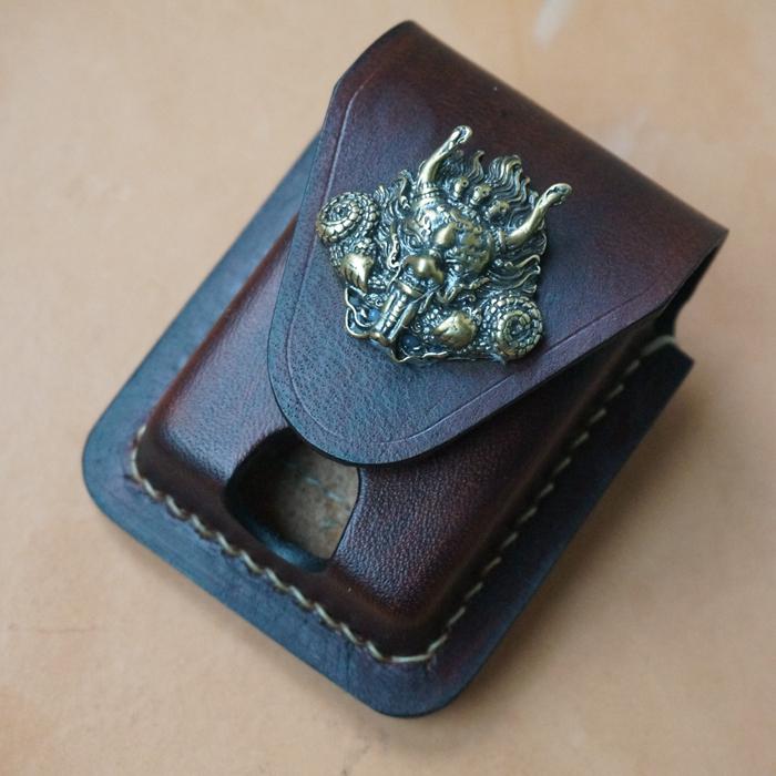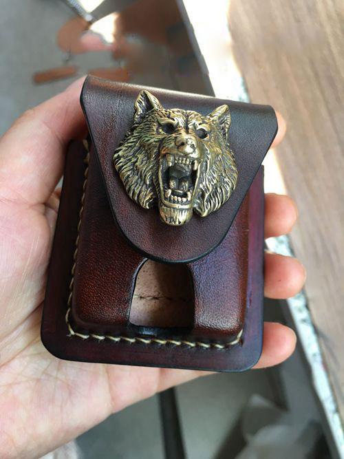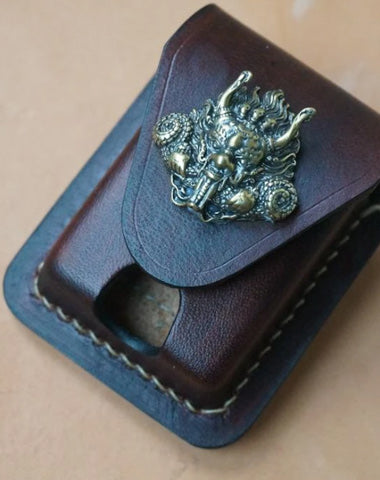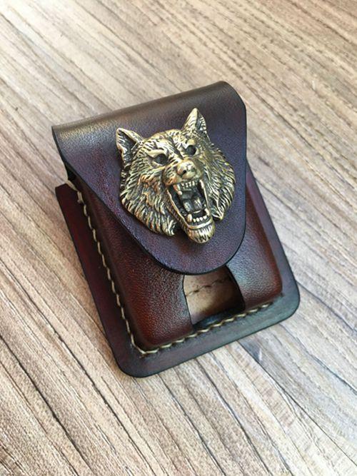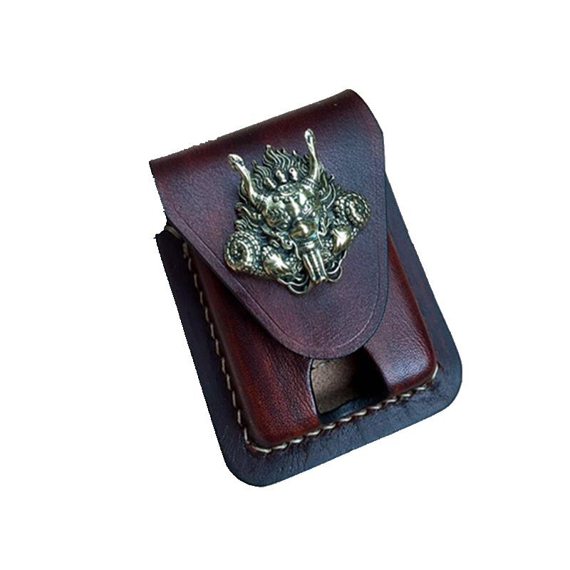 Design: Brown Handmade Leather Magnetic Lighter Cover Protective Lighter Cover For Men