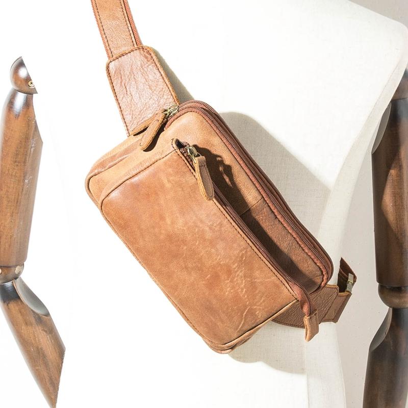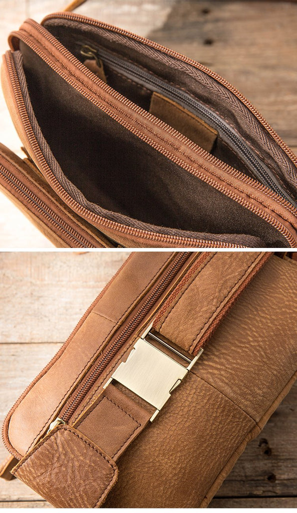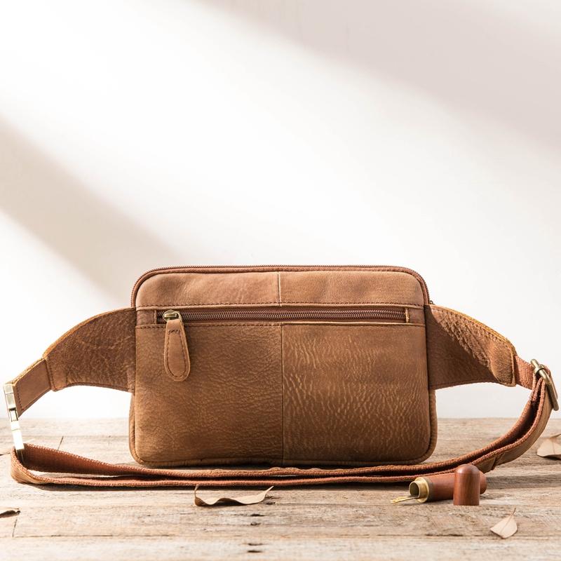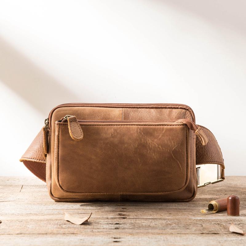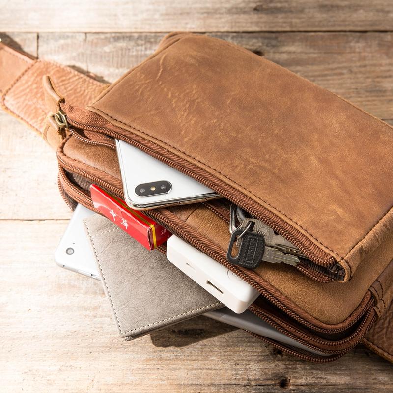 Design: Brown Handmade Leather Mens 8inches Waist Bag Chest Bag Multifunction One Shoulder Backpack for Men