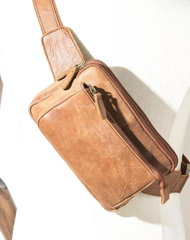 Style: Brown Handmade Leather Mens 8inches Waist Bag Chest Bag Multifunction One Shoulder Backpack for Men