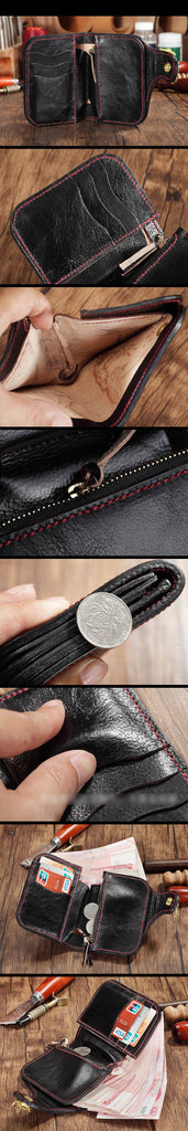 Design: Brown Handmade Leather Mens Woven Zipper Bifold Long Wallet Black Clutch Wallet For Men