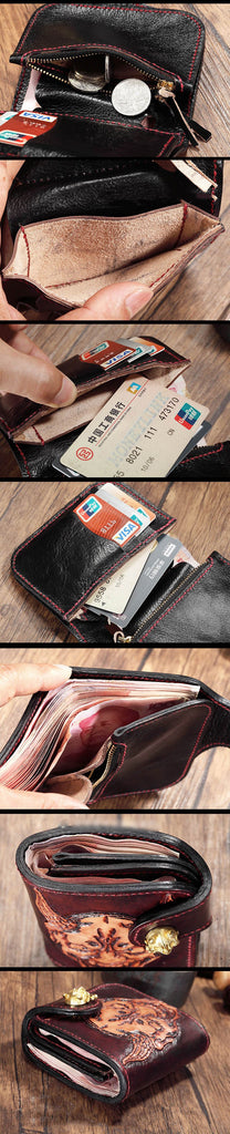 Style: Brown Handmade Leather Mens Woven Zipper Bifold Long Wallet Black Clutch Wallet For Men
