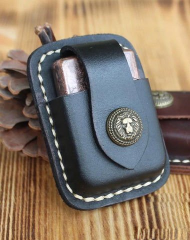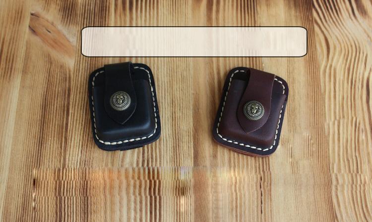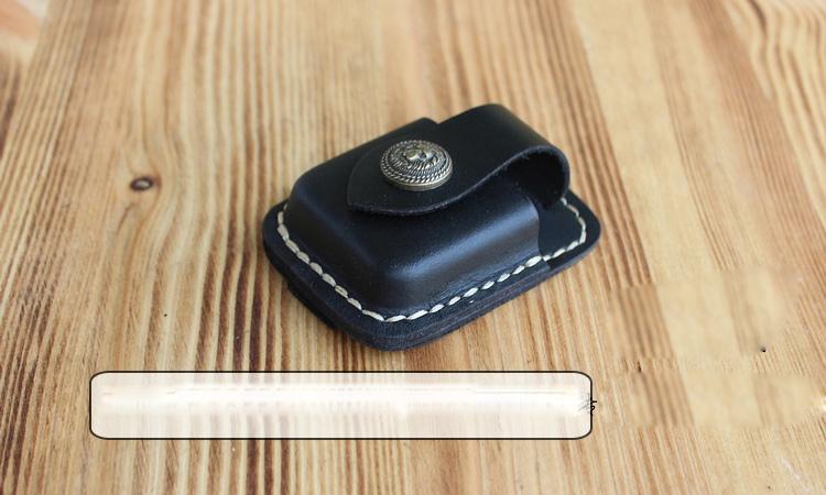 Design: Handmade Black Leather Mens Classic Zippo Lighter Case Zippo Lighter Holder with Belt Clip