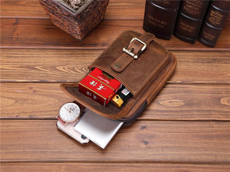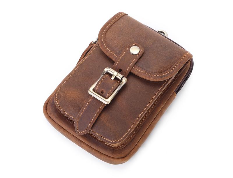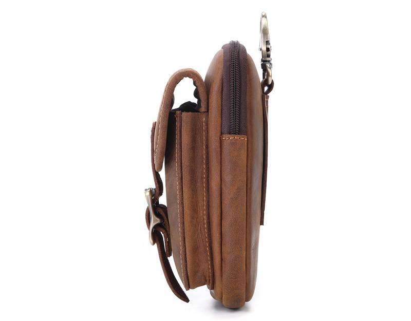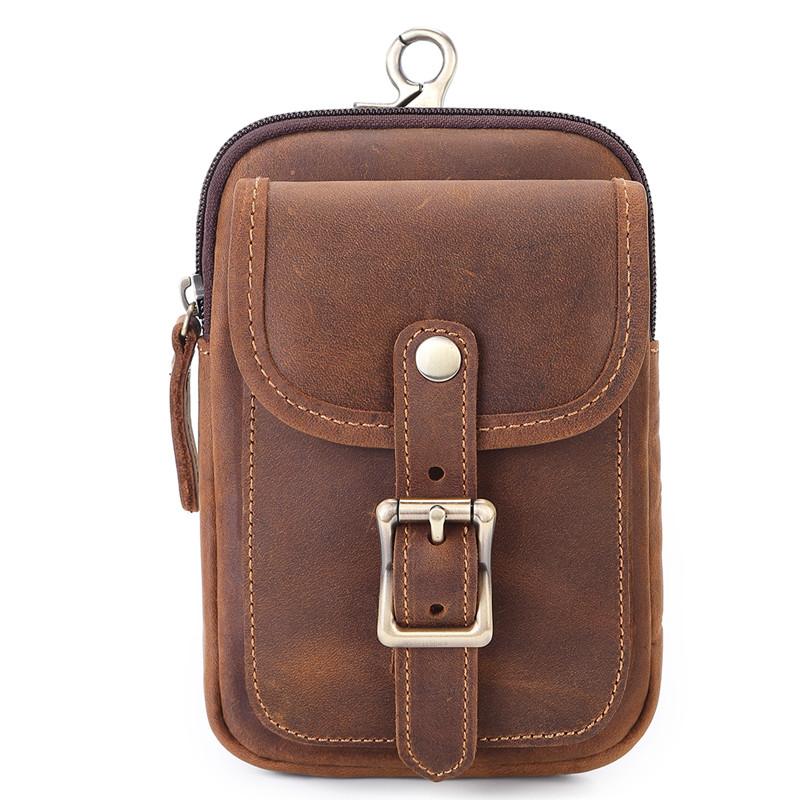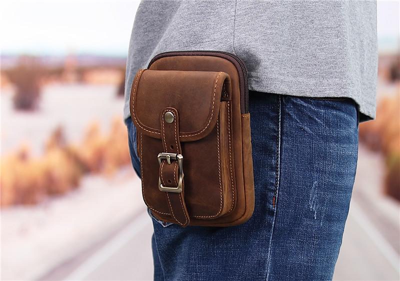 Design: Brown Leather Cell Phone Waist Pouches Side Bag Belt Bag For Men