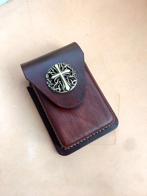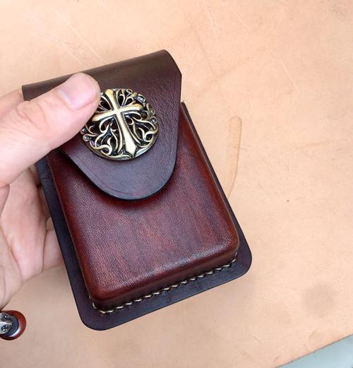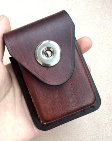 Design: Brown Leather Cigarette Case with Lighter Cover Magnetic Buckle Protective Lighter Cover For Men