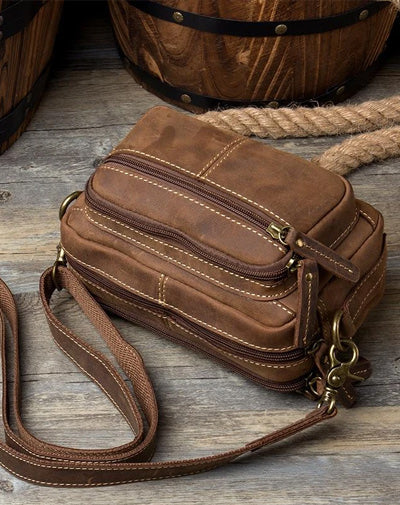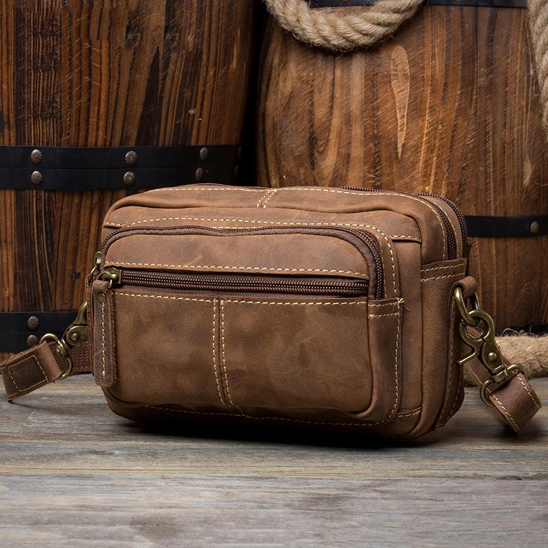 Style: Brown Leather Fanny Pack Mens Waist Bags Hip Pack 8 inches Belt Bags Bumbags for Men