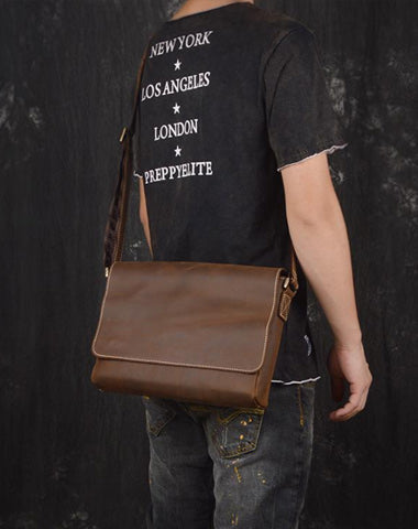 Design: Brown Leather Mens 10 inches Large Laptop Side Bag Dark Brown Messenger Bag Postman Bag For Men