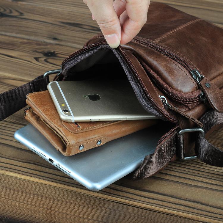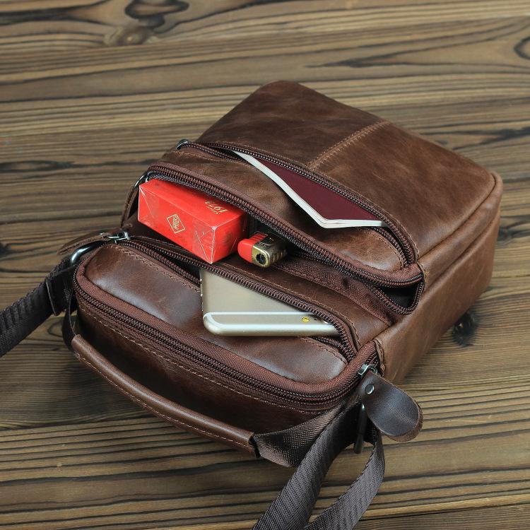 Design: BADASS BROWN YELLOW LEATHER MEN'S 10 inches SLING BAG ONE SHOULDER BAG CHEST BAG MESSENGER BAG FOR MEN