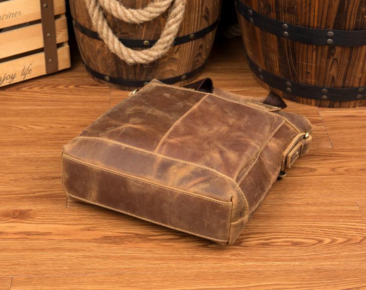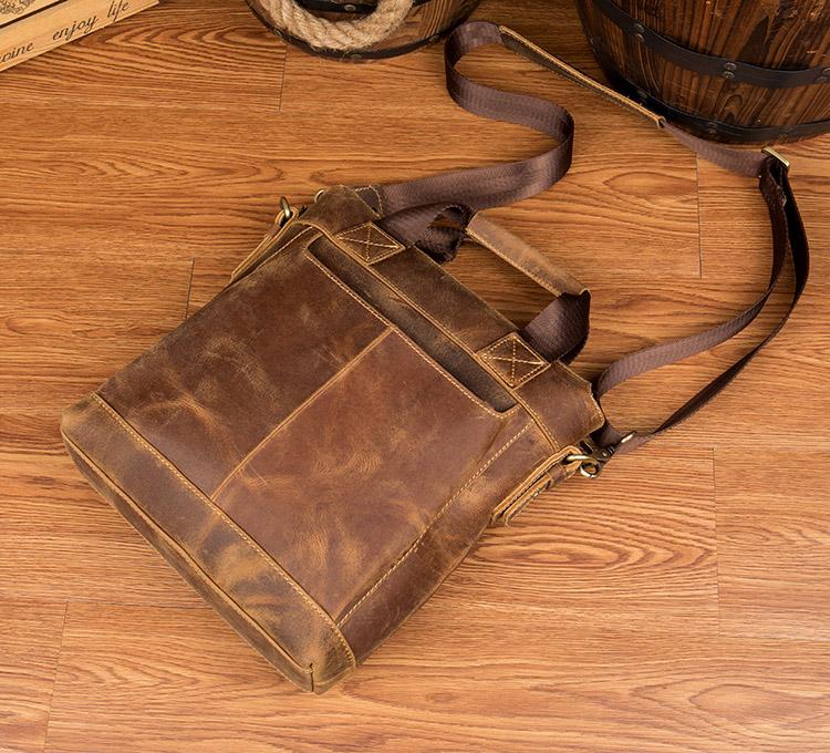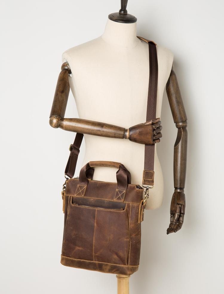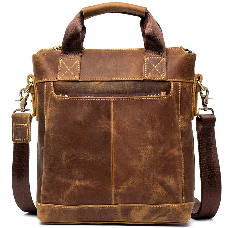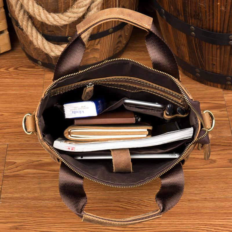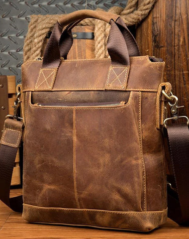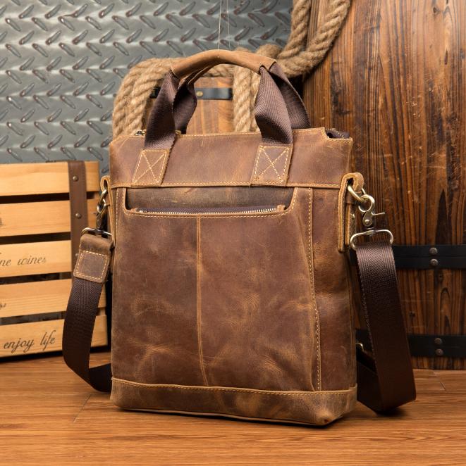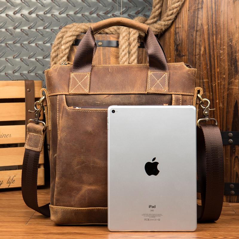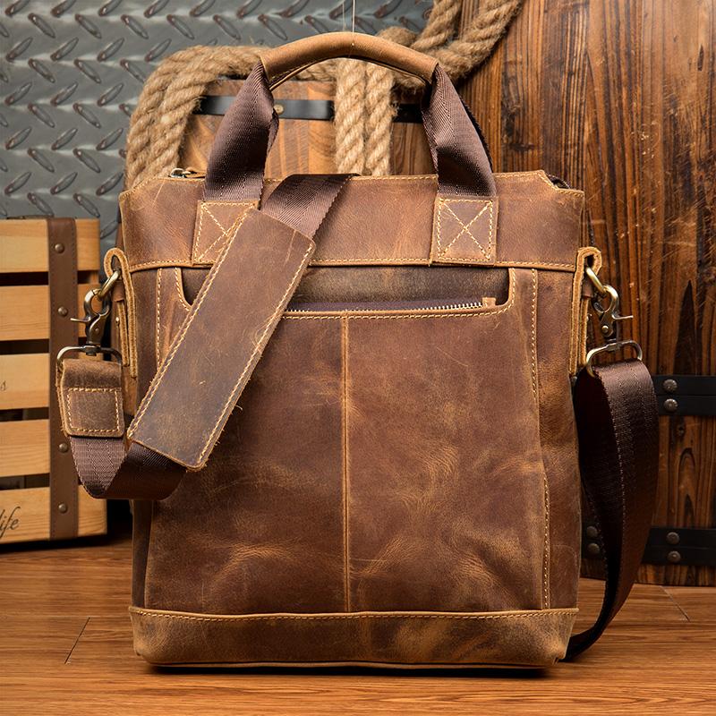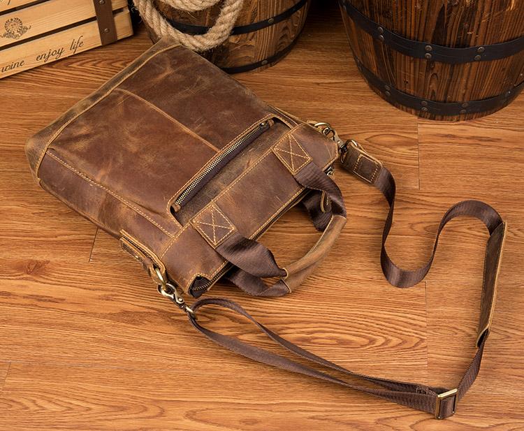 Brown Leather Mens 13 inches Briefcase Vertical Laptop Side Bags Business Bags Work Bags for Men