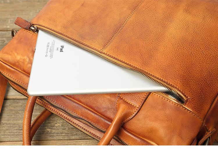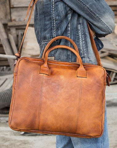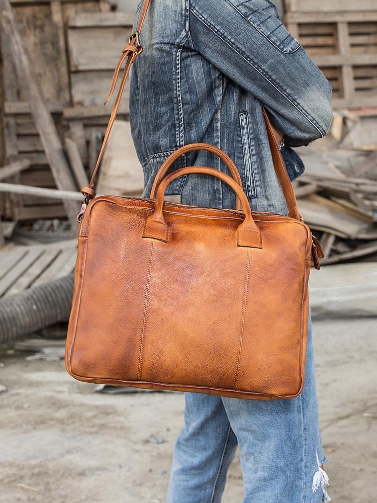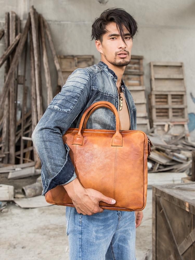 Design: Brown Leather Mens 14 inches Briefcase Work Bag Laptop Bag Business Bag for Men