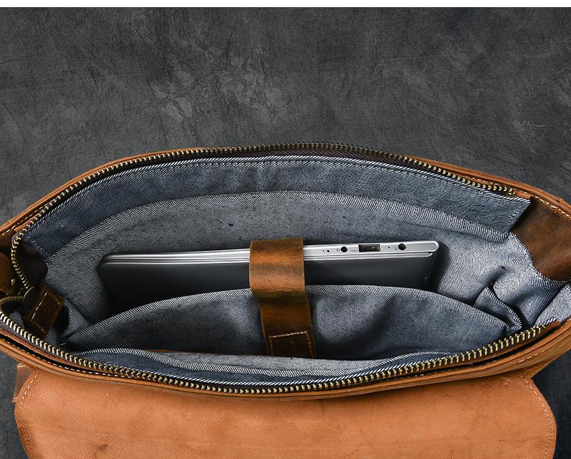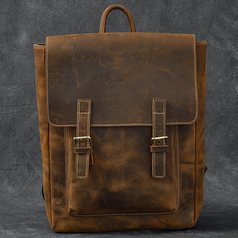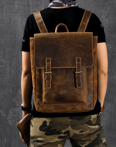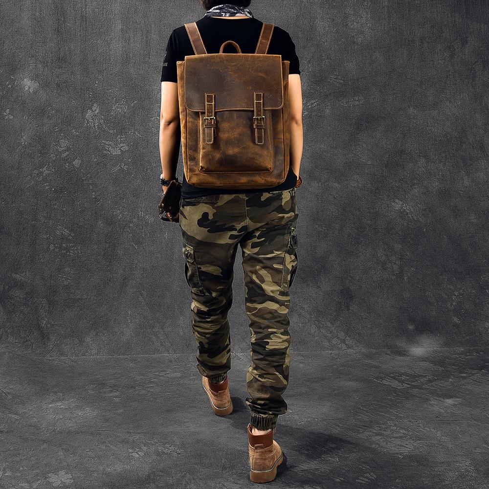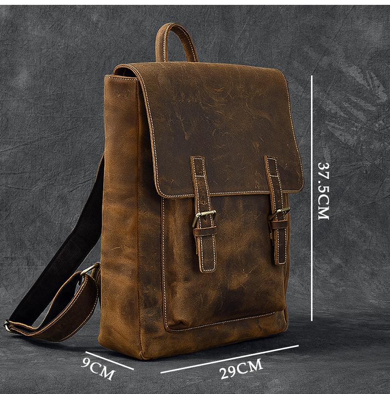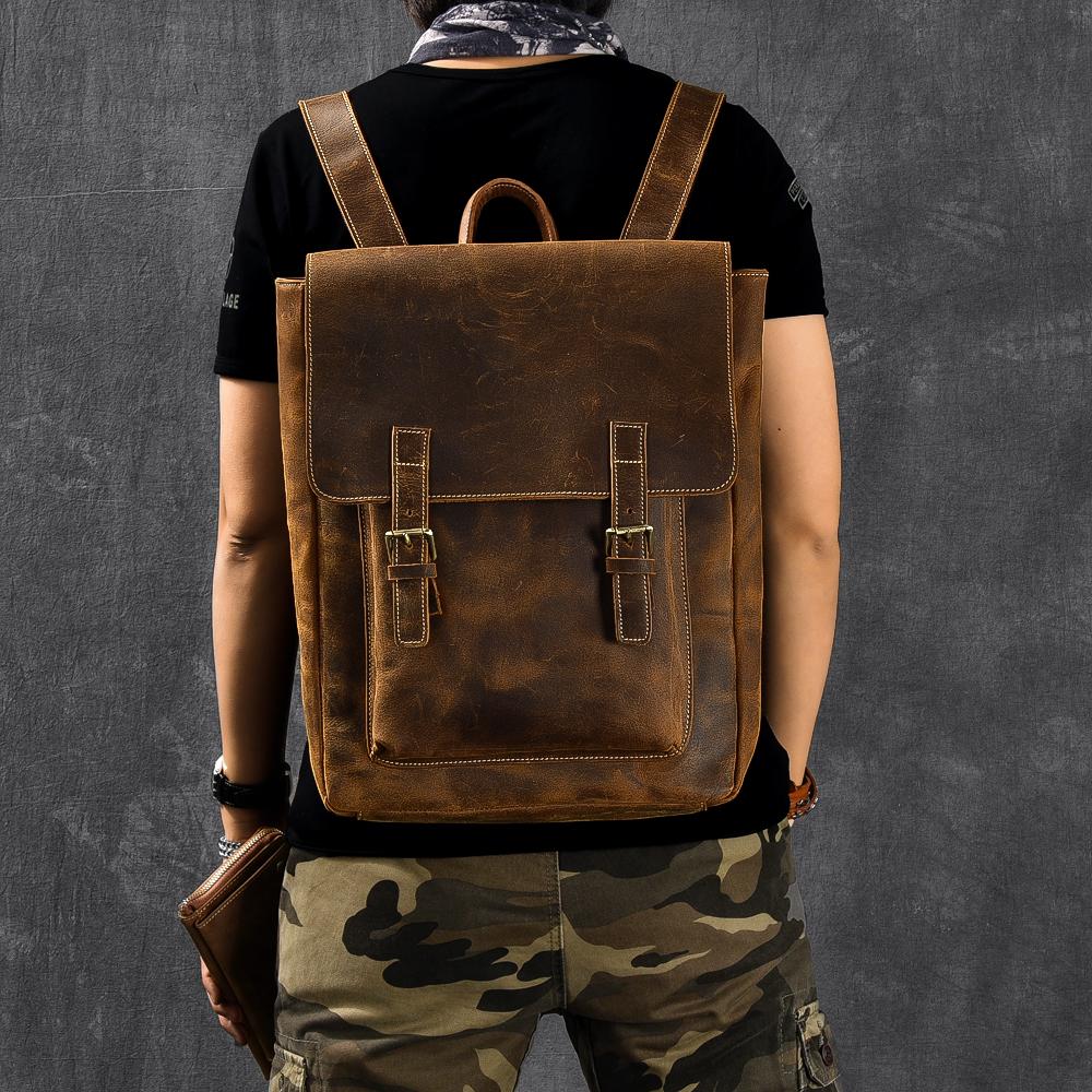 Design: Brown Leather Mens 14" Laptop Hiking Backpack Travel Backpack College Bag for Men