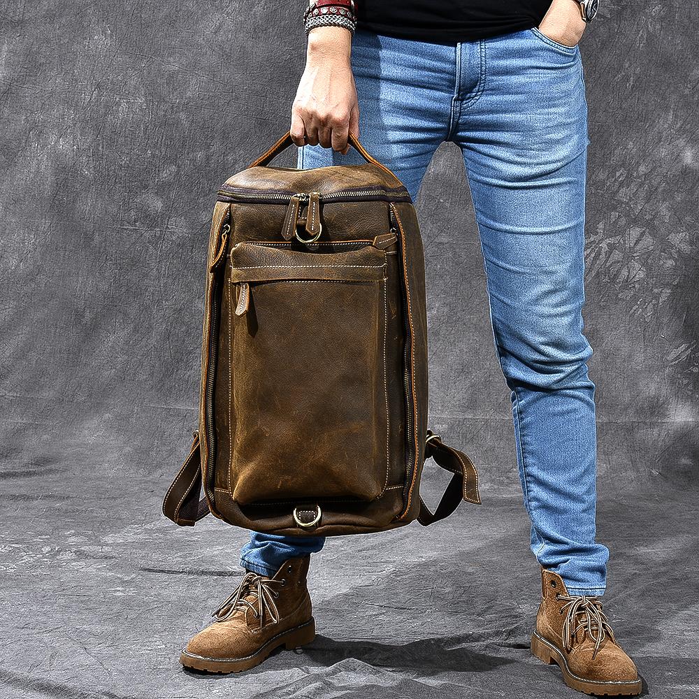 Style: Brown Leather Mens 15" Laptop Backpack Hiking Backpack Travel Backpack Crossbody Bag for Men