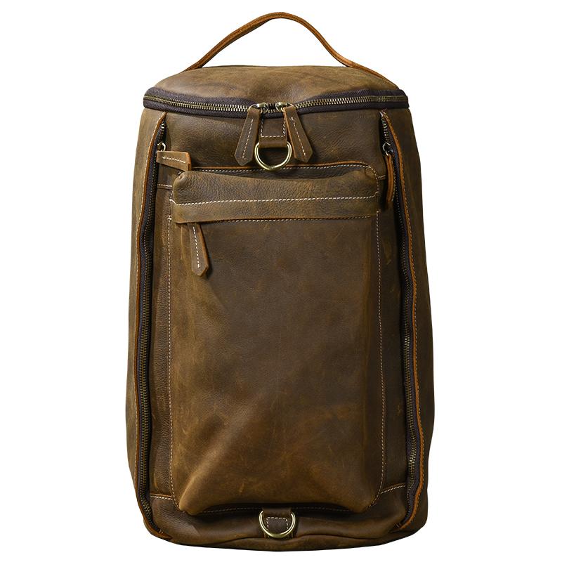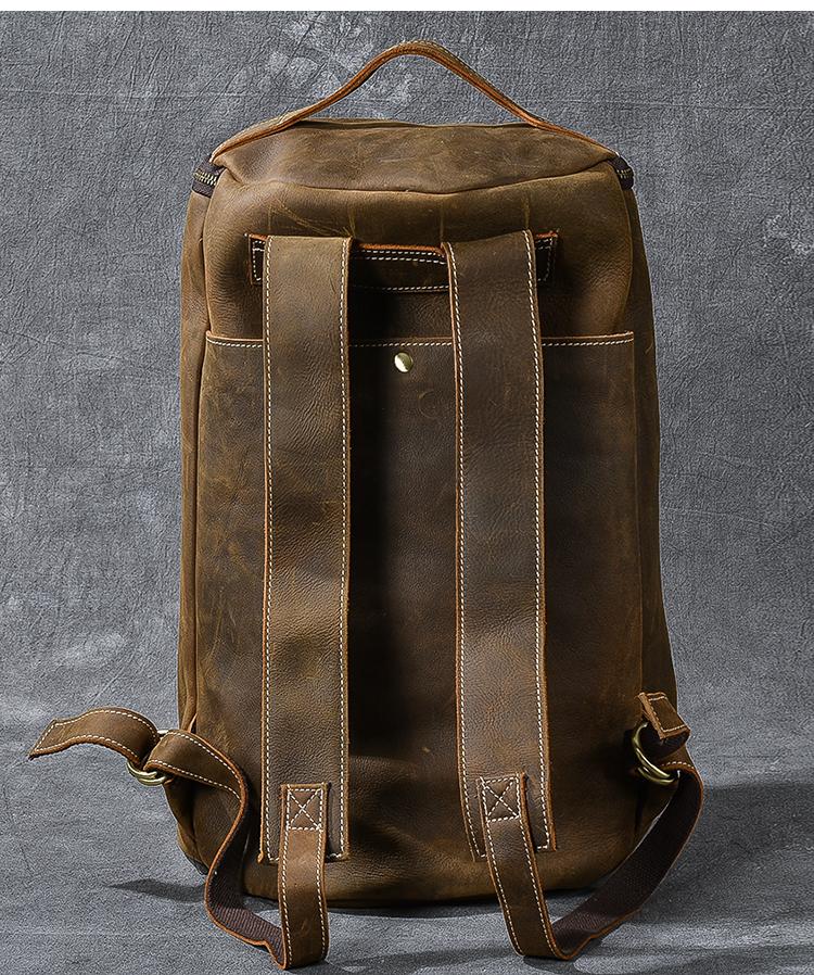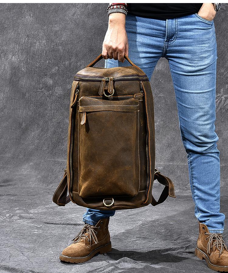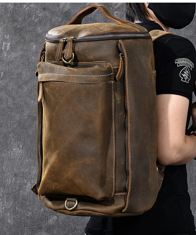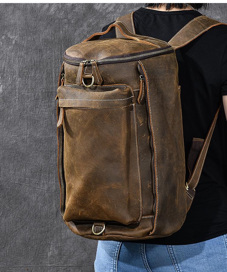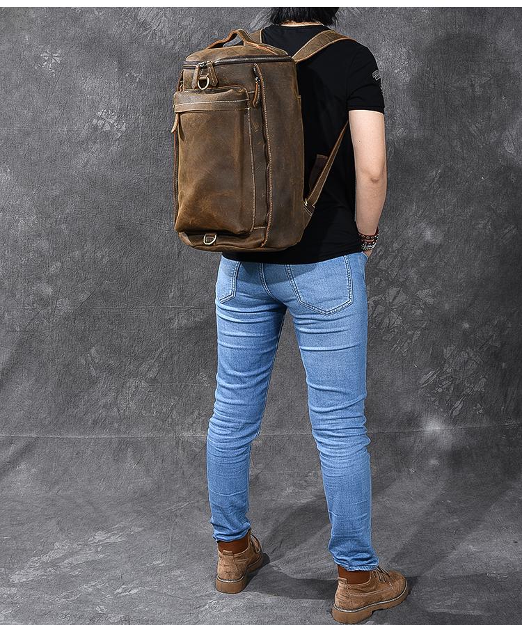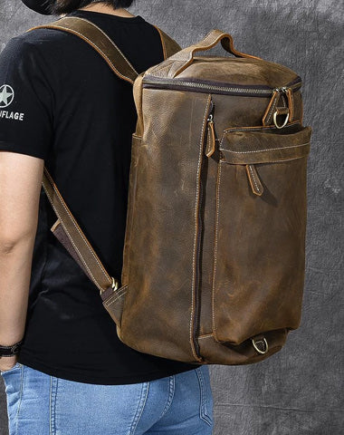 Design: Brown Leather Mens 15" Laptop Backpack Hiking Backpack Travel Backpack Crossbody Bag for Men