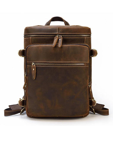 Design: Brown Leather Men's 16 inches Large Computer Backpack Retro Large Travel Backpack Large College Backpack For MenOverview: