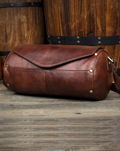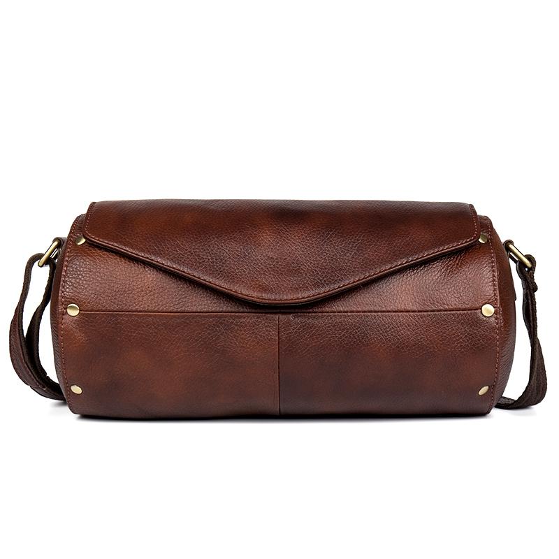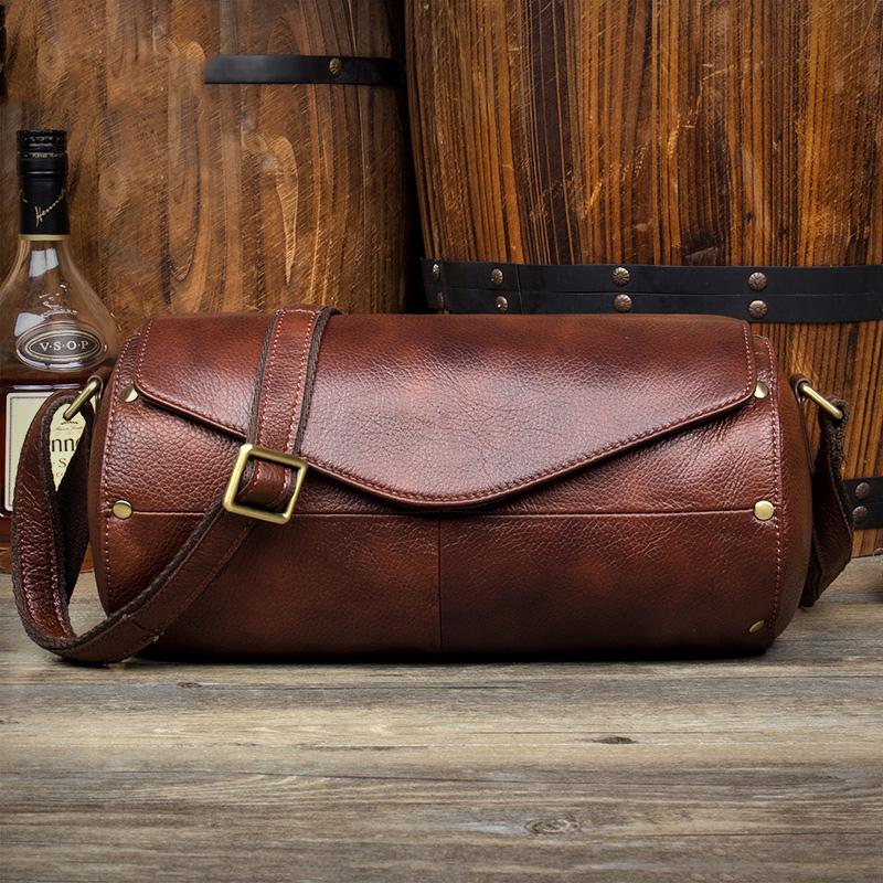Style: Brown Leather Mens 8 inches Bucket Bag Shoulder Bag Messenger Bag For Men