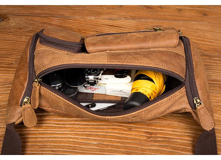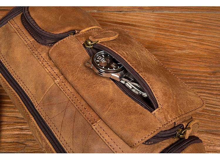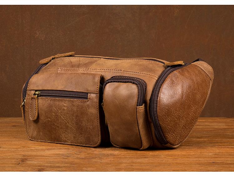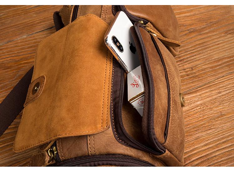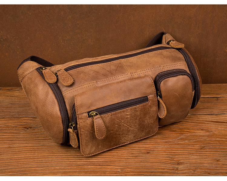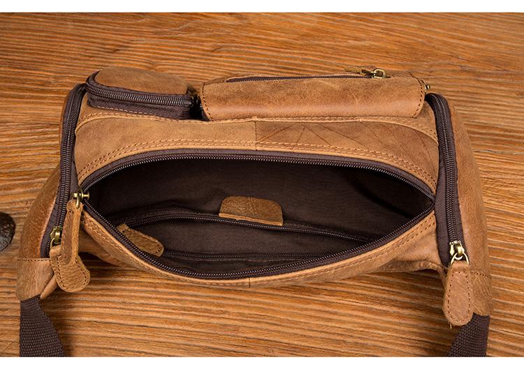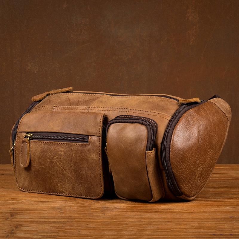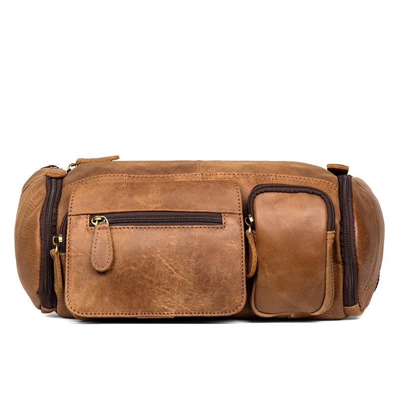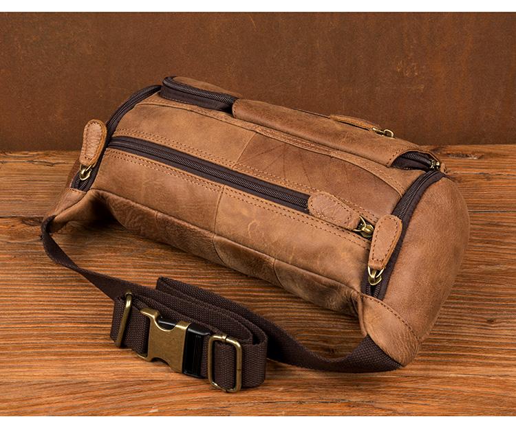 Design: Brown Leather Mens 8 inches Cool Sling Bags Barrel Bag Chest Bags for men