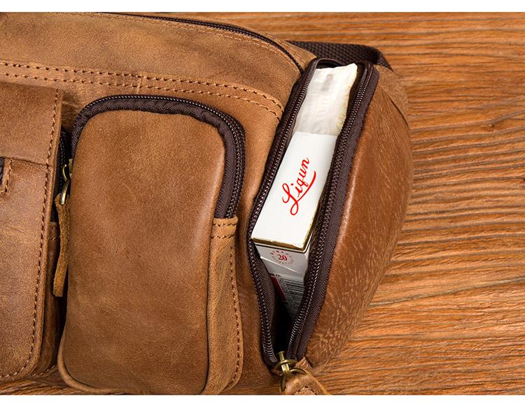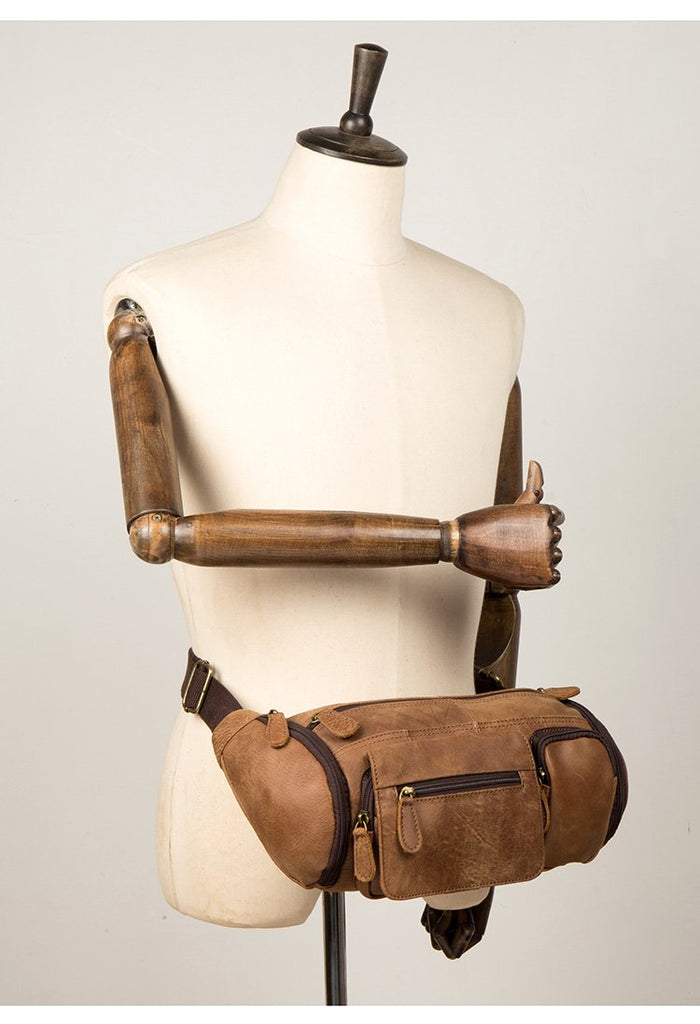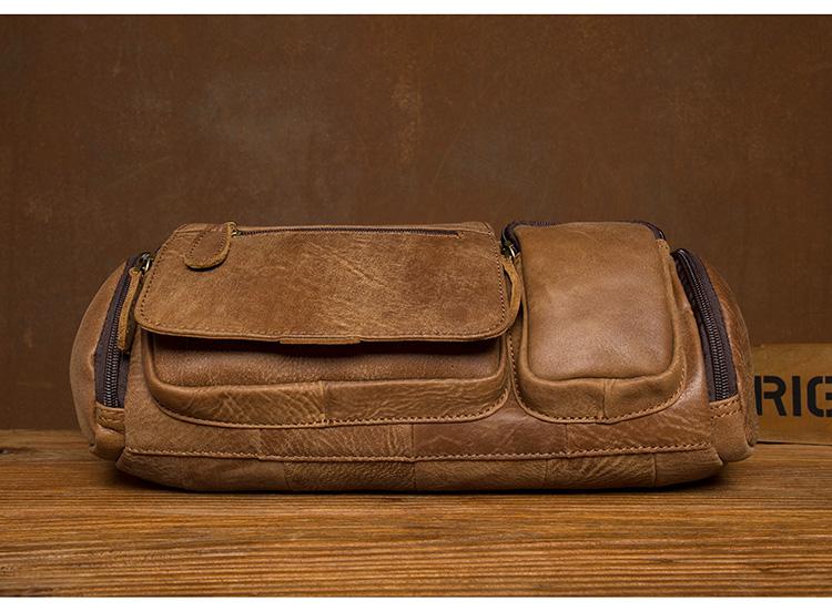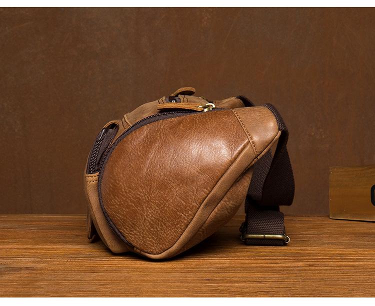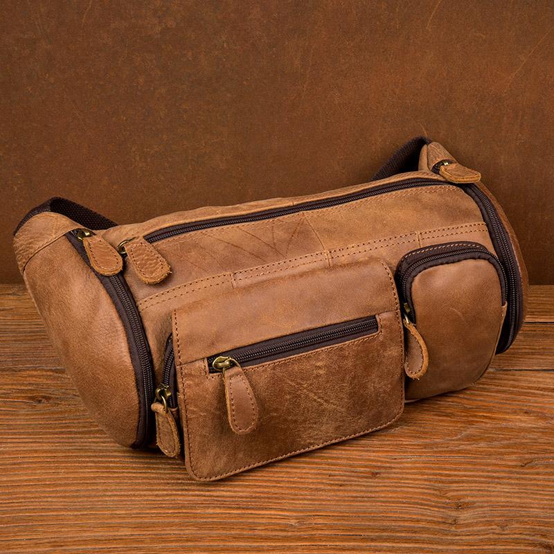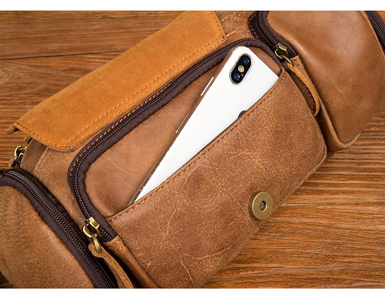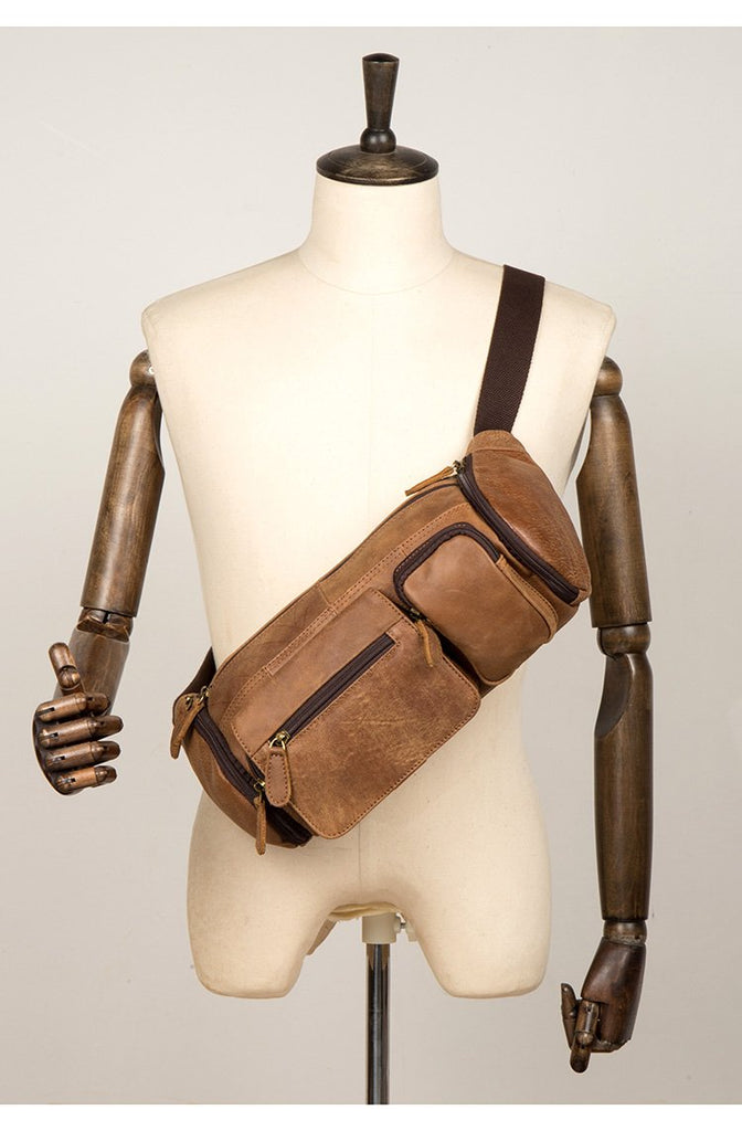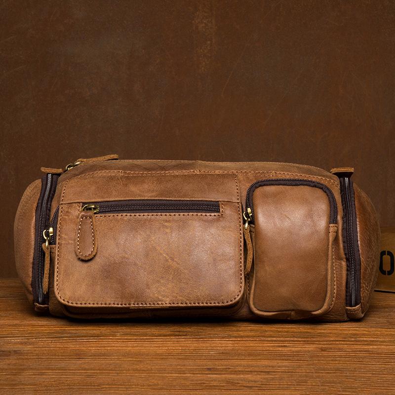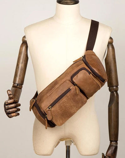 Style: Brown Leather Mens 8 inches Cool Sling Bags Barrel Bag Chest Bags for men