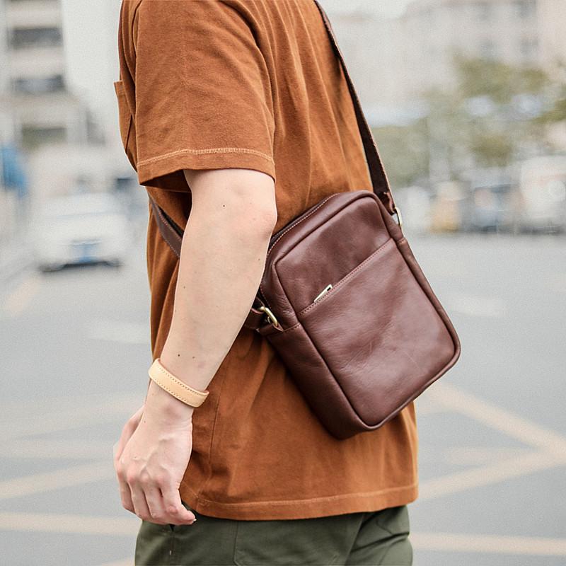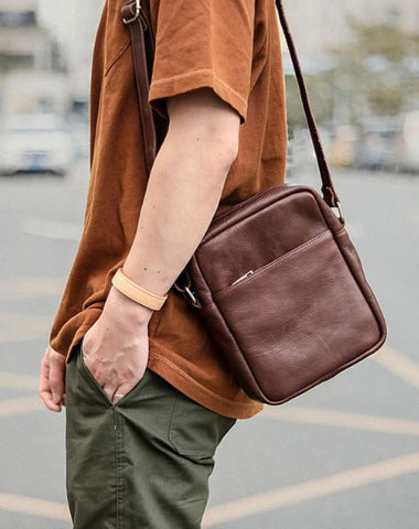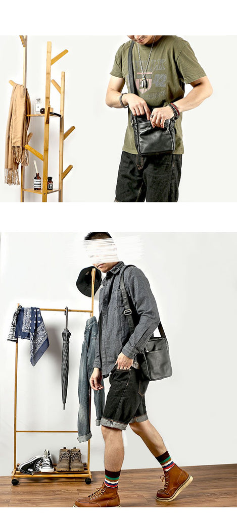 Style: Brown Leather Mens Casual 8 inches Courier Bag Messenger Bags Black Postman Bag For Men