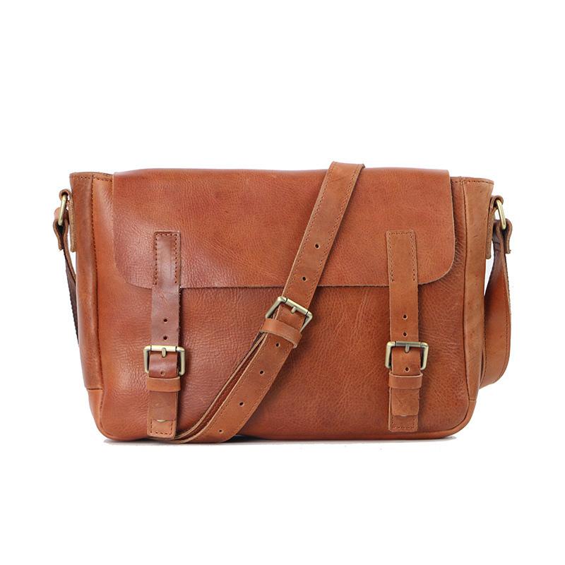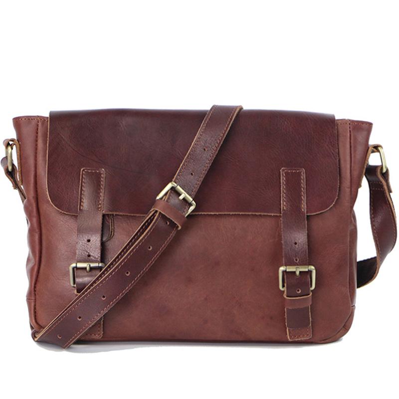 Design: Brown Leather Mens Casual Small Courier Bags Messenger Bags 10 inches Postman Bag For Men