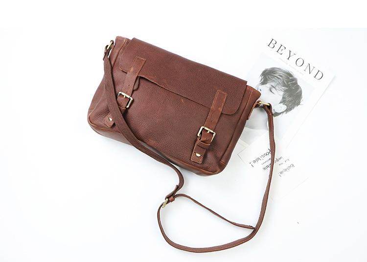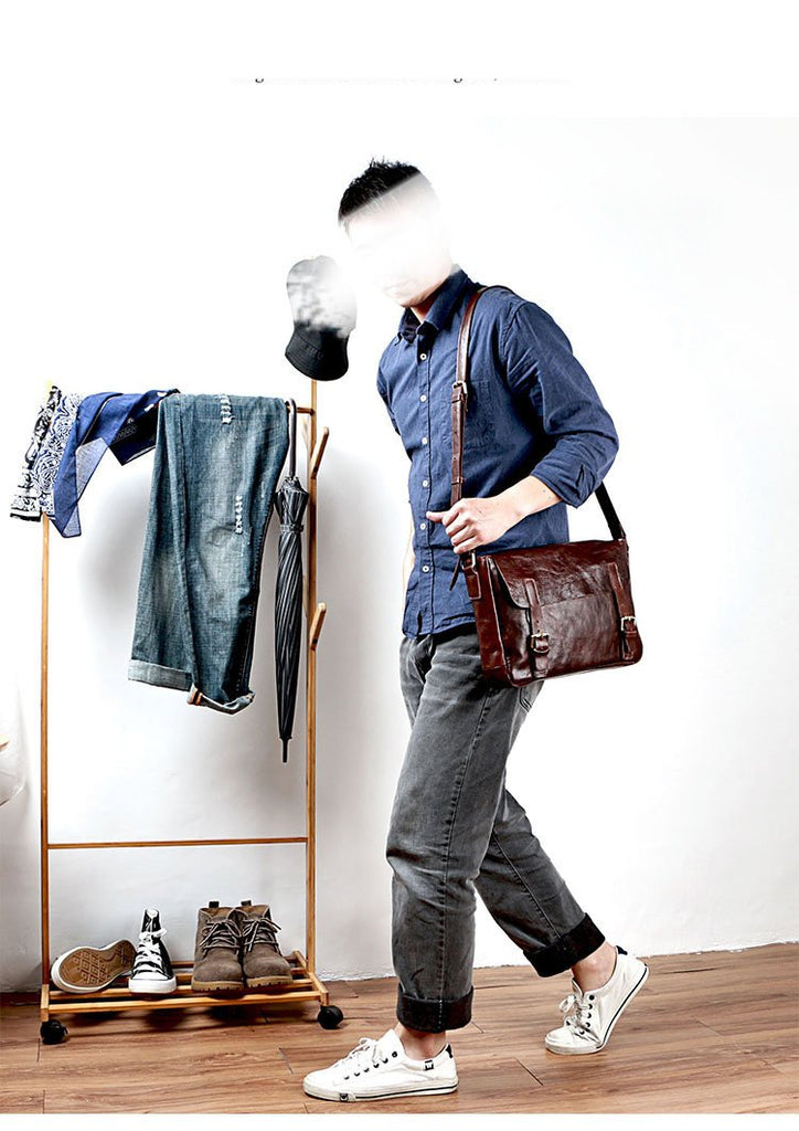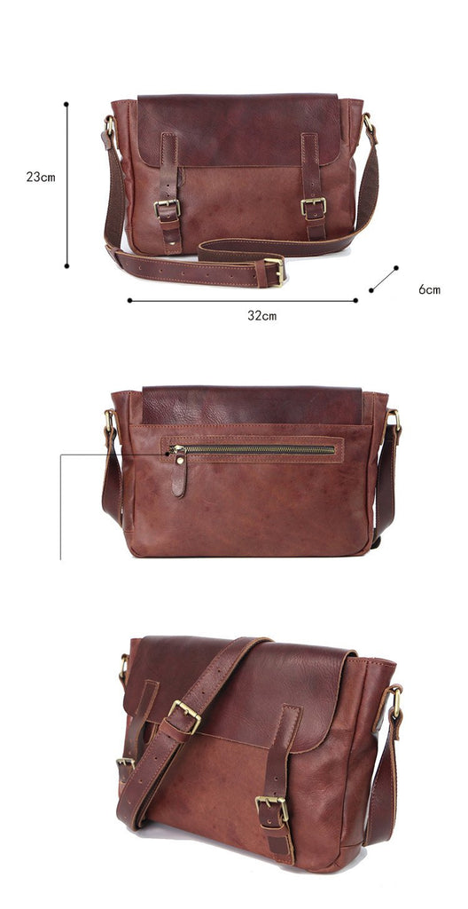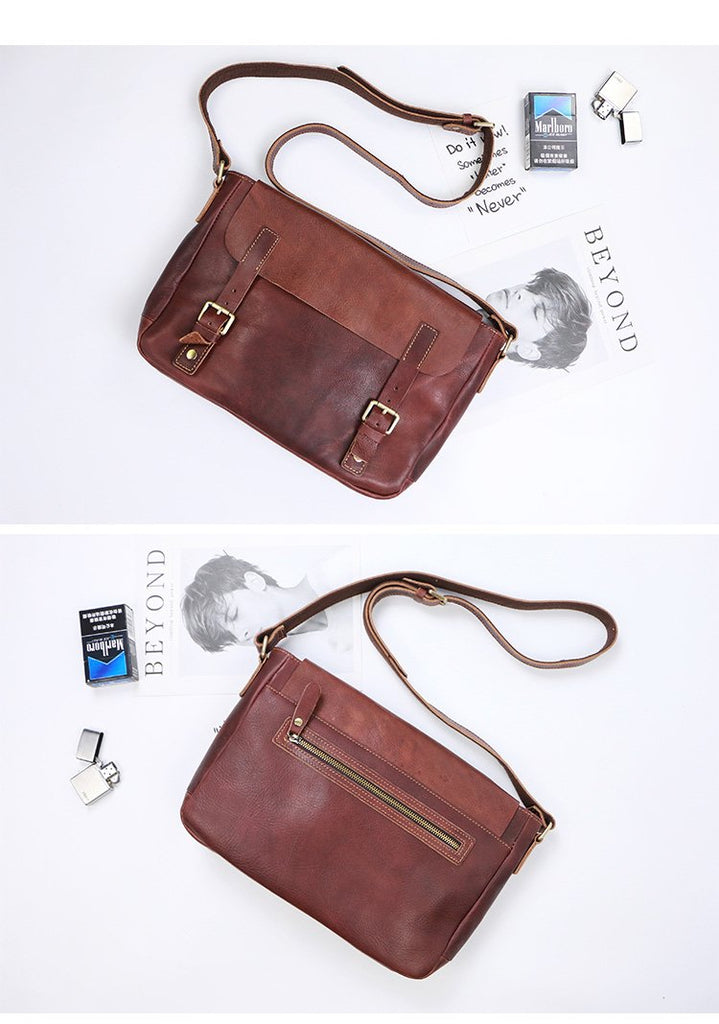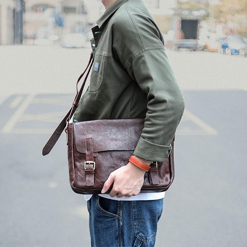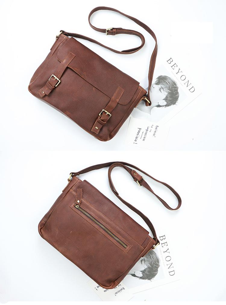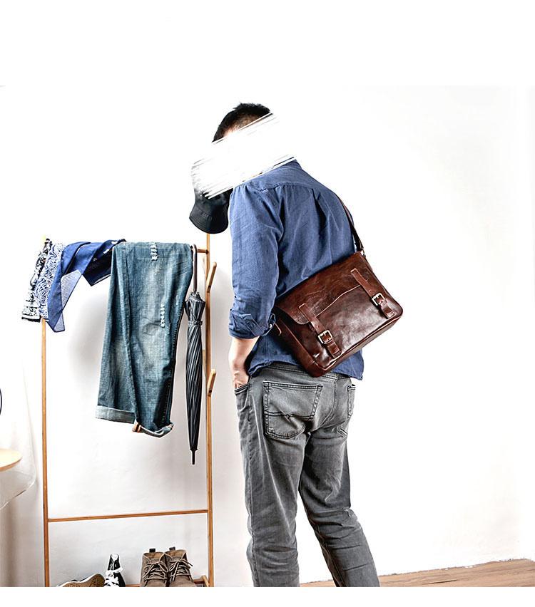 Style: Brown Leather Mens Casual Small Courier Bags Messenger Bags 10 inches Postman Bag For Men