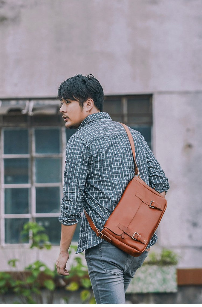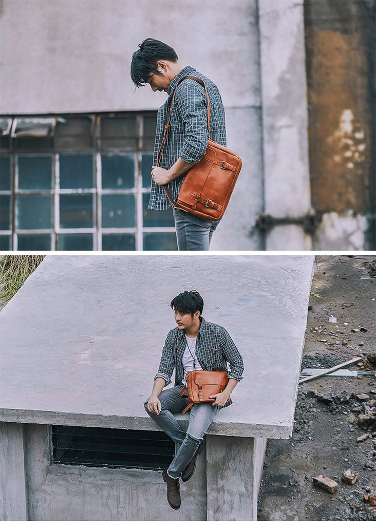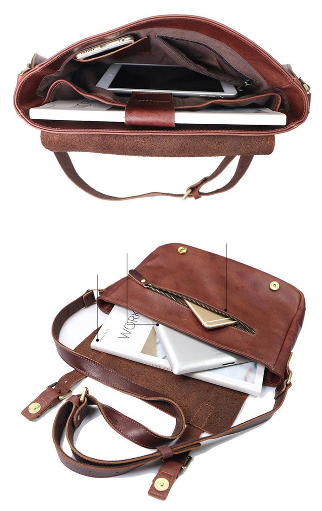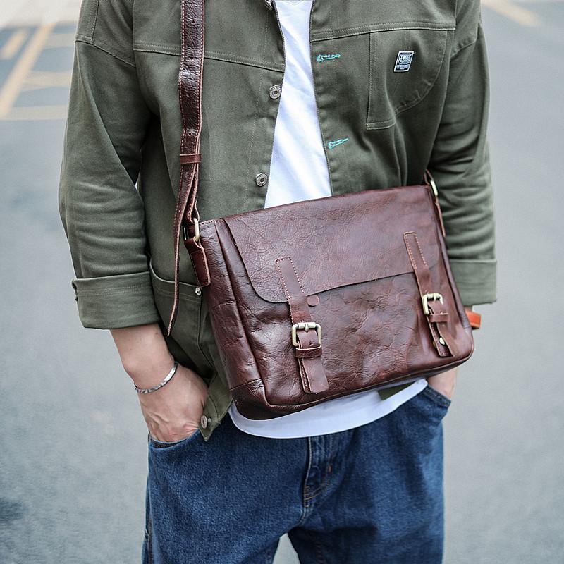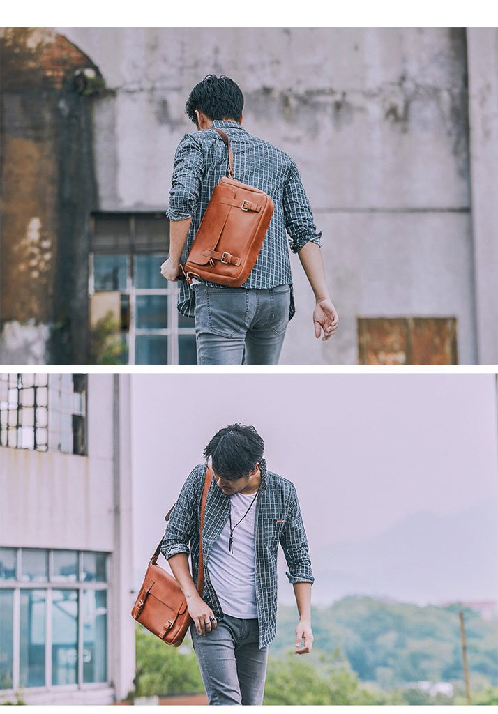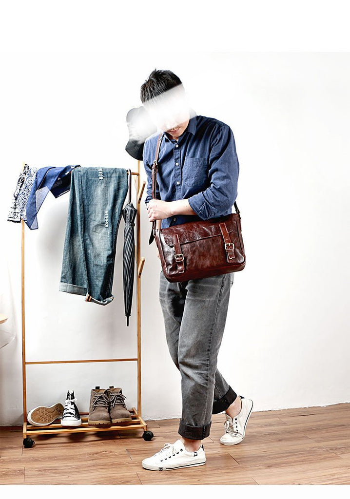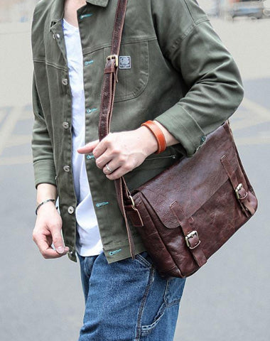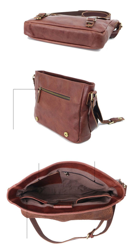 Style: Brown Leather Mens Casual Small Courier Bags Messenger Bags 10 inches Postman Bag For Men